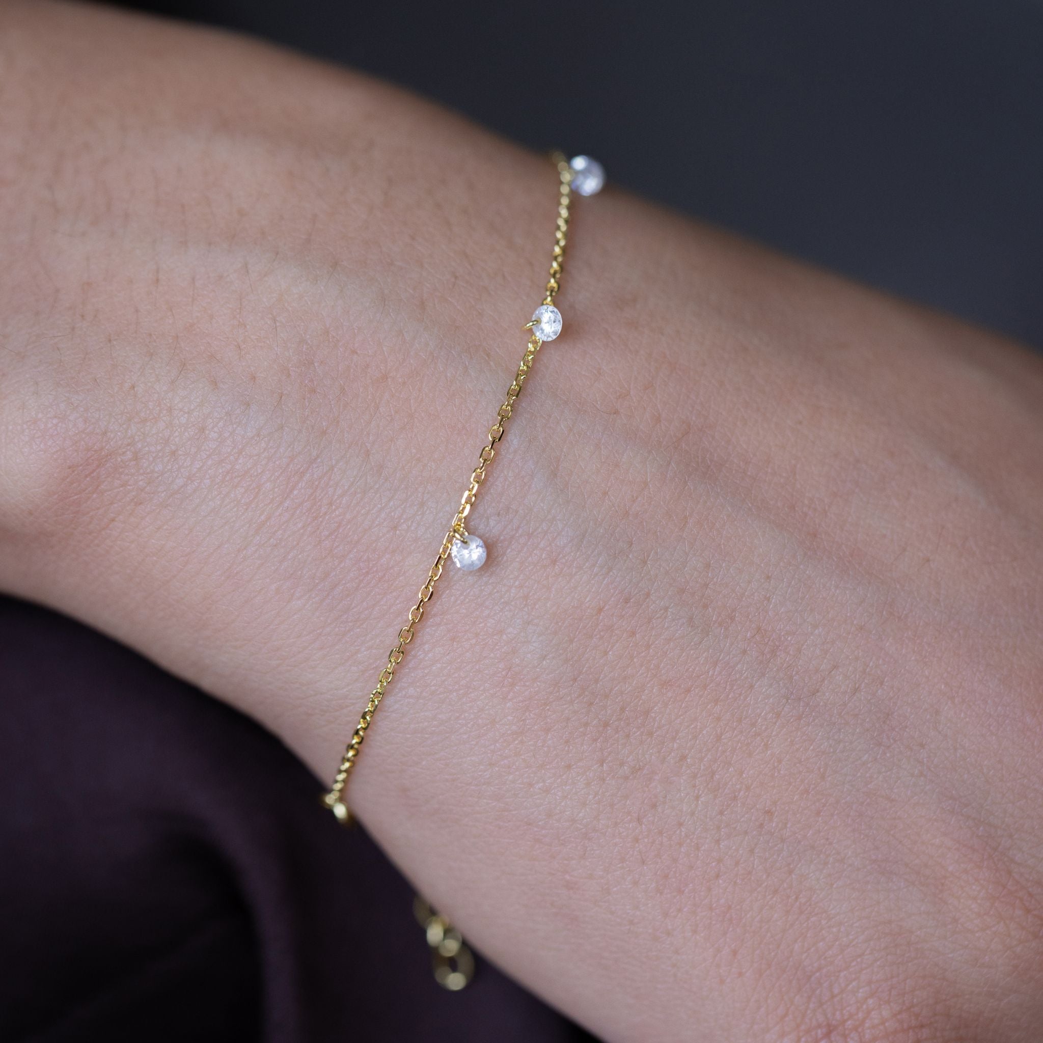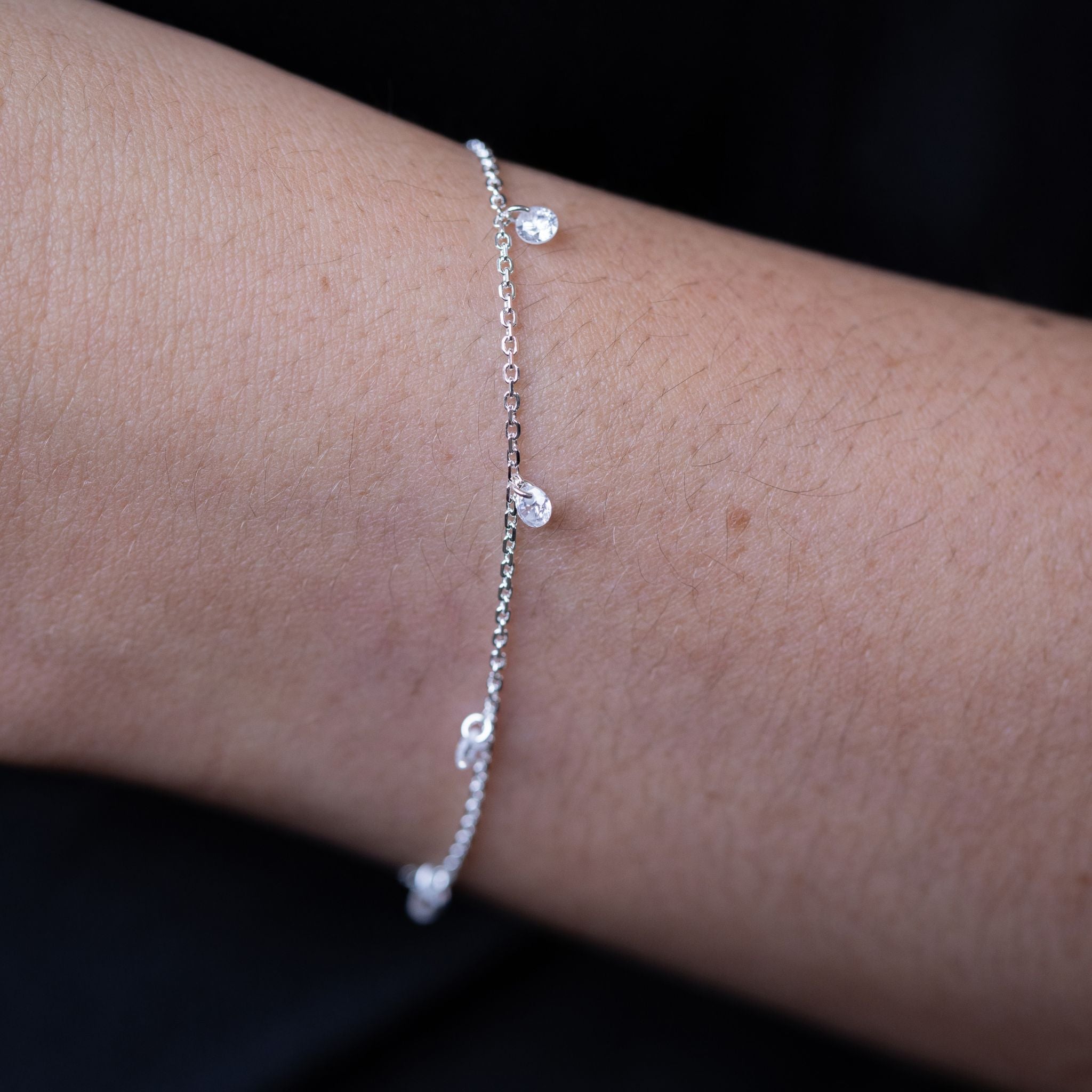Featuring 5 twinkling cubic zirconia, suspended magically for a delicate floating effect. The perfect way to add a little sparkle to any look!