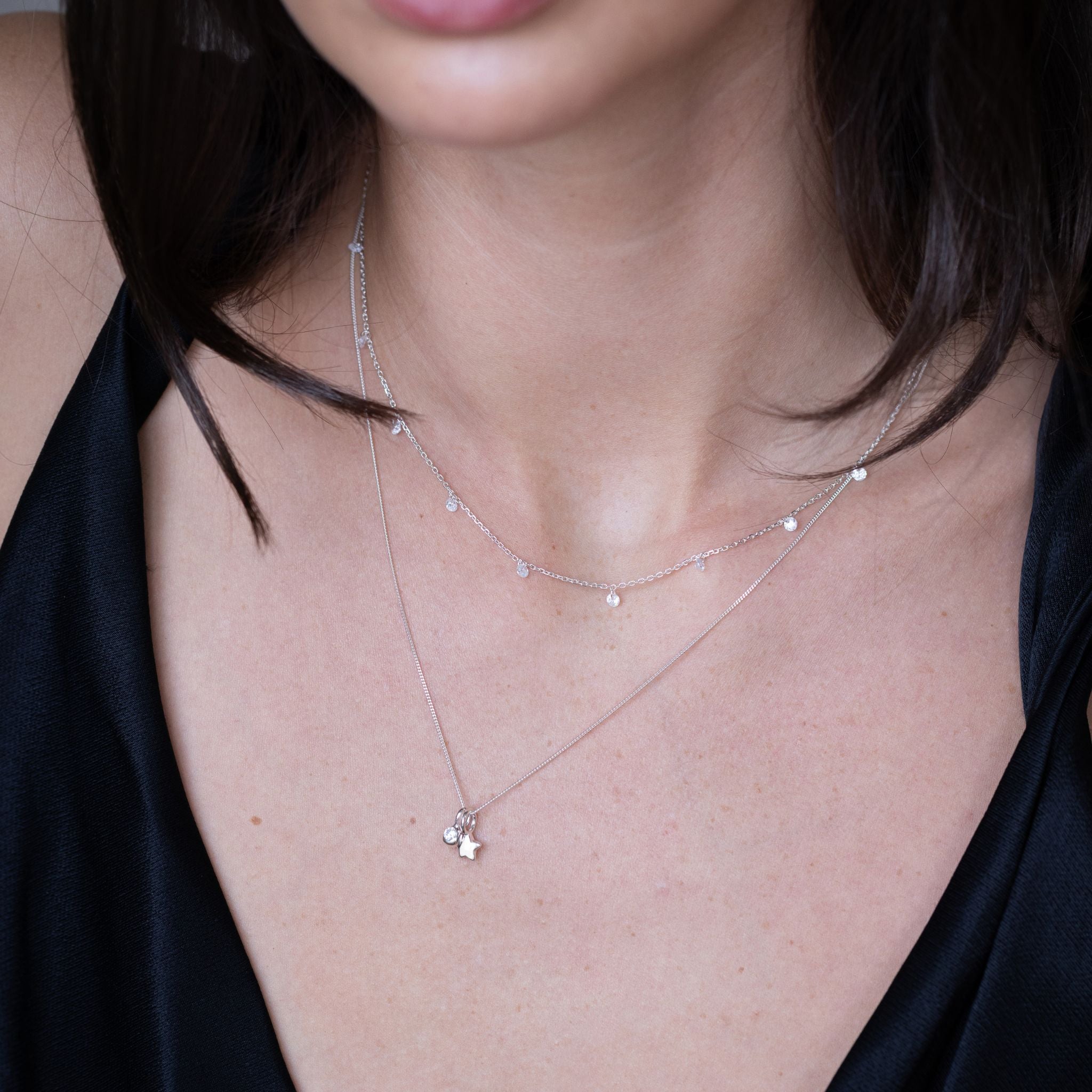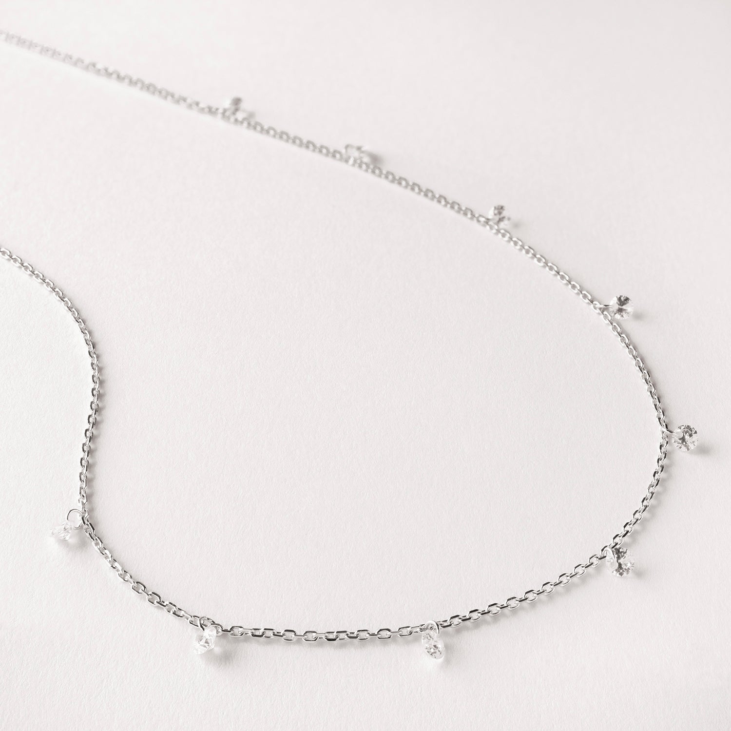 Featuring 9 twinkling cubic zirconia, suspended magically for a delicate floating effect. The perfect everyday essential, or layer up for a little extra twinkle.