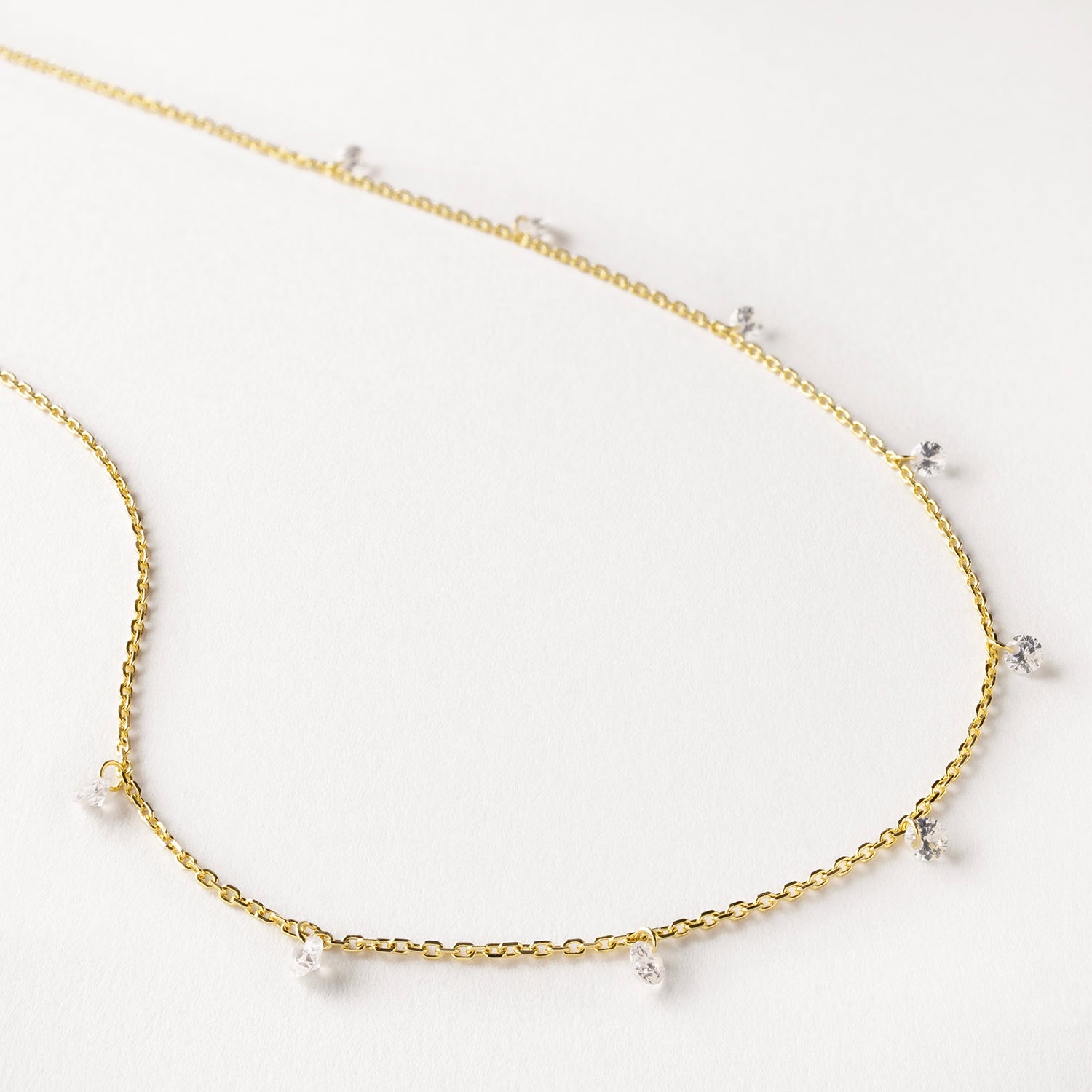 Featuring 9 twinkling cubic zirconia, suspended magically for a delicate floating effect. The perfect everyday essential, or layer up for a little extra twinkle.