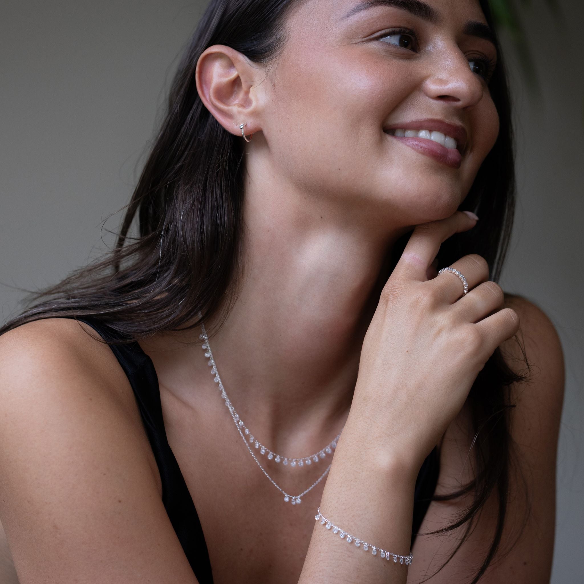 Featuring a trio of twinkling cubic zirconia, suspended magically for a delicate floating effect. The perfect way to add a little sparkle to any look!