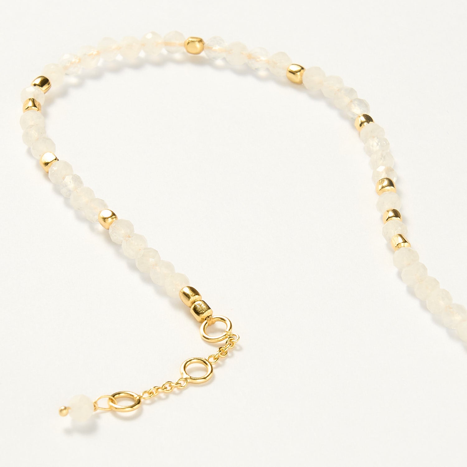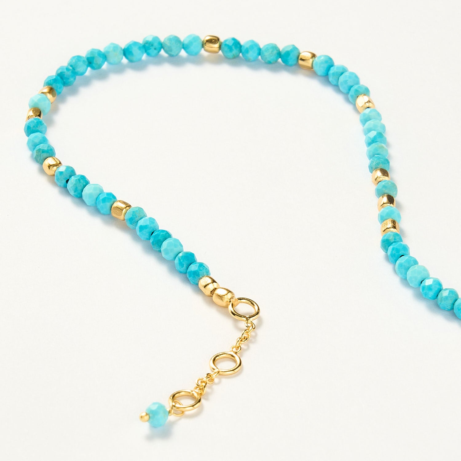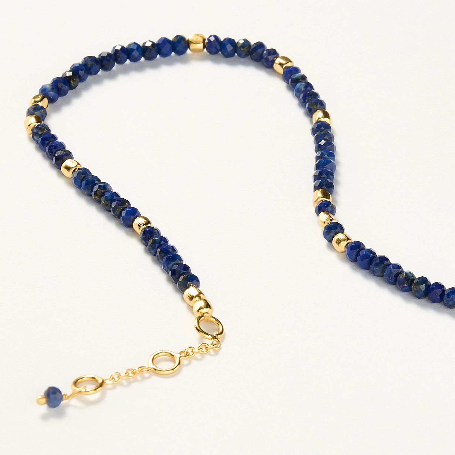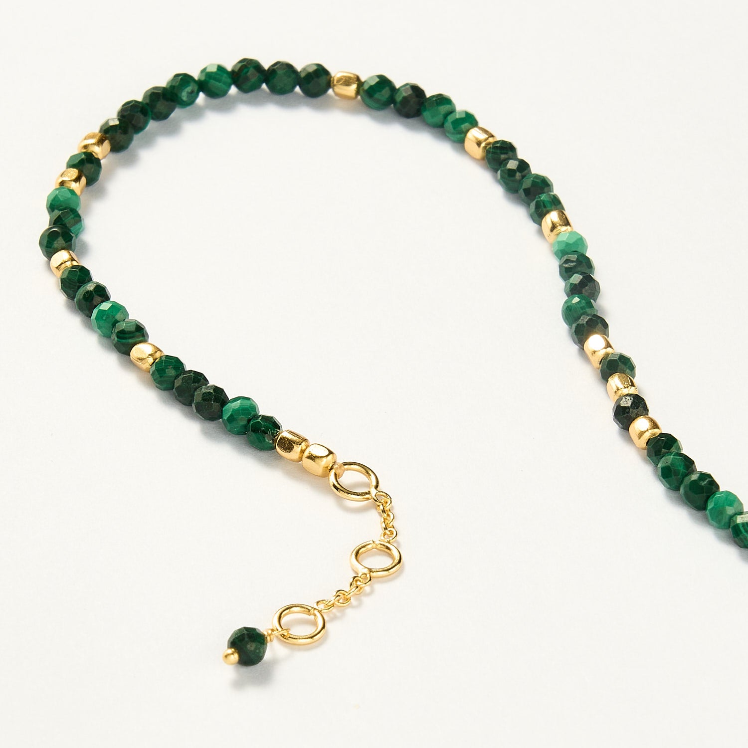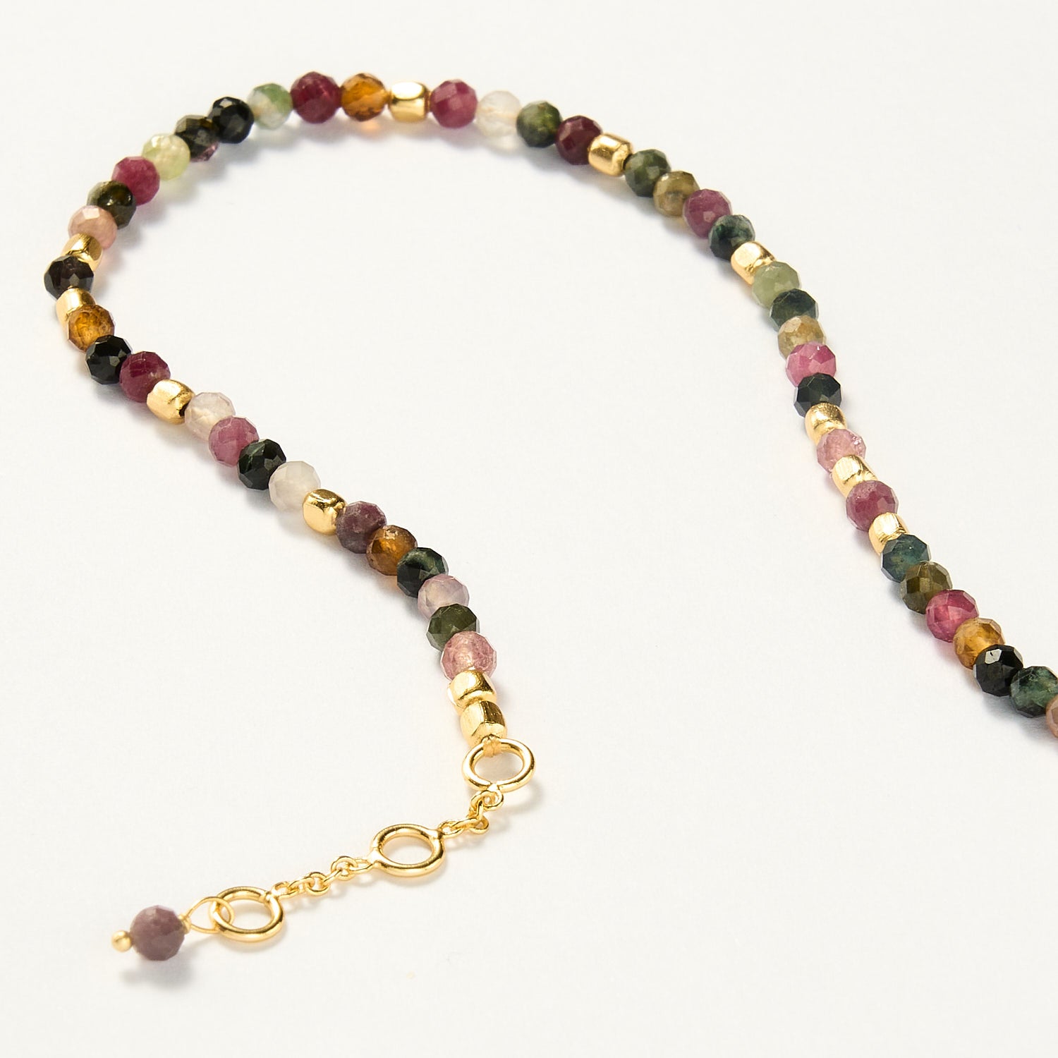The Bali beaded bracelet features a string of vibrant natural gemstones interspersed with shining gold toned beads.