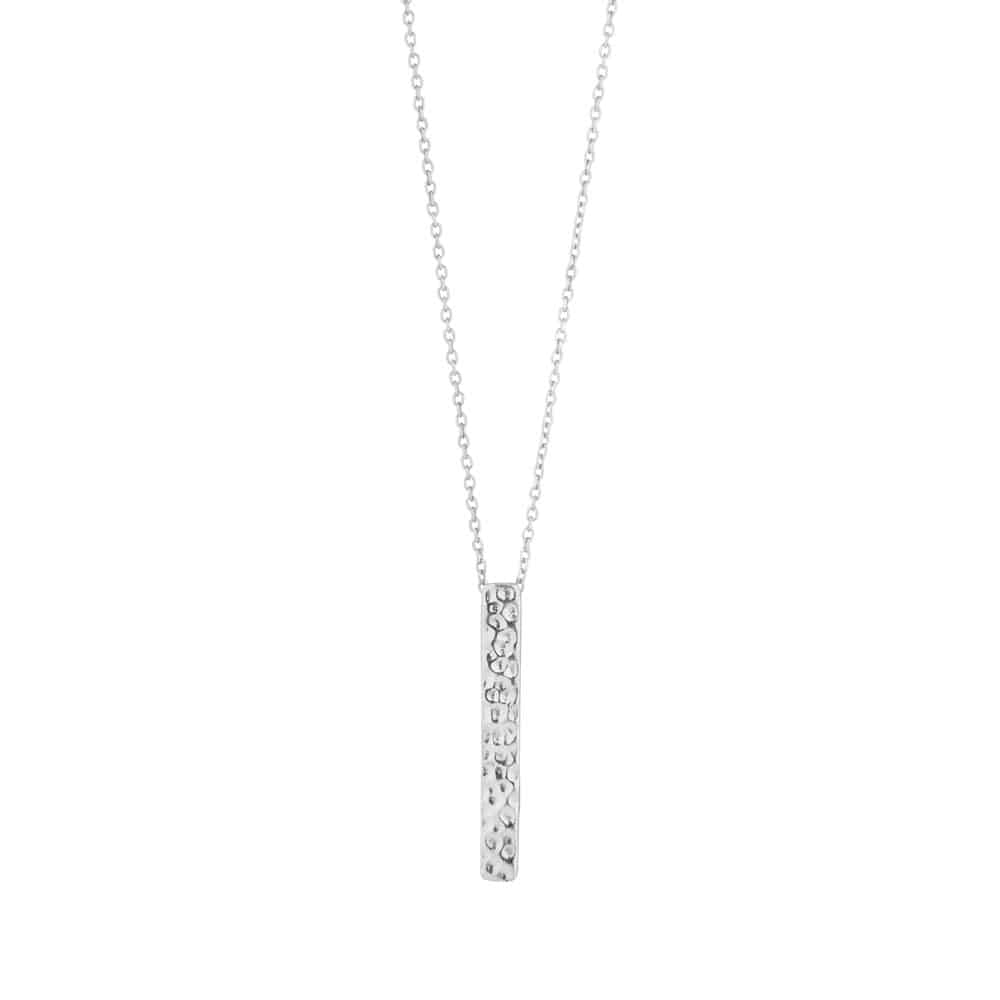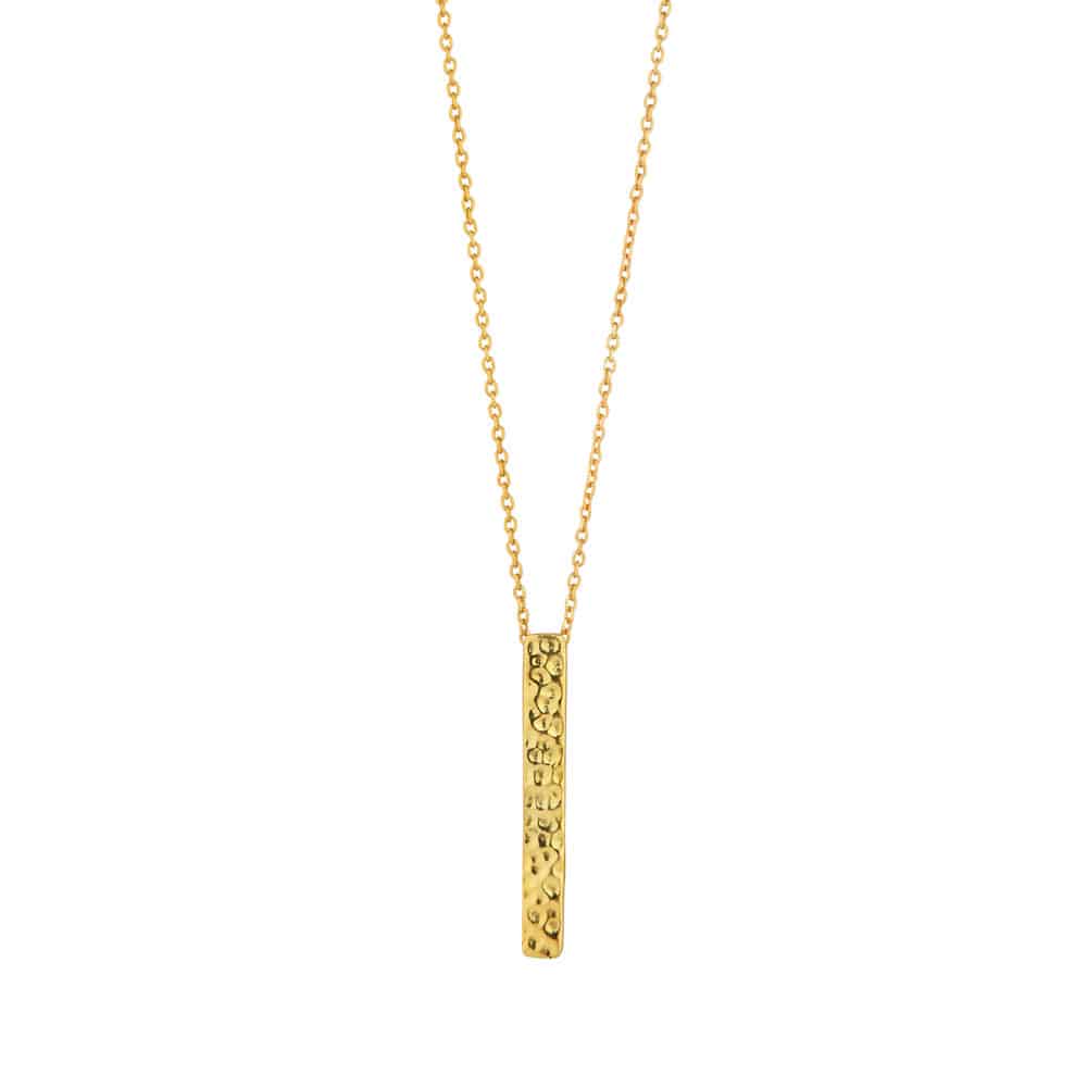 A simple hammered bar pendant on a chain in sterling silver or 18kt gold plated sterling silver.