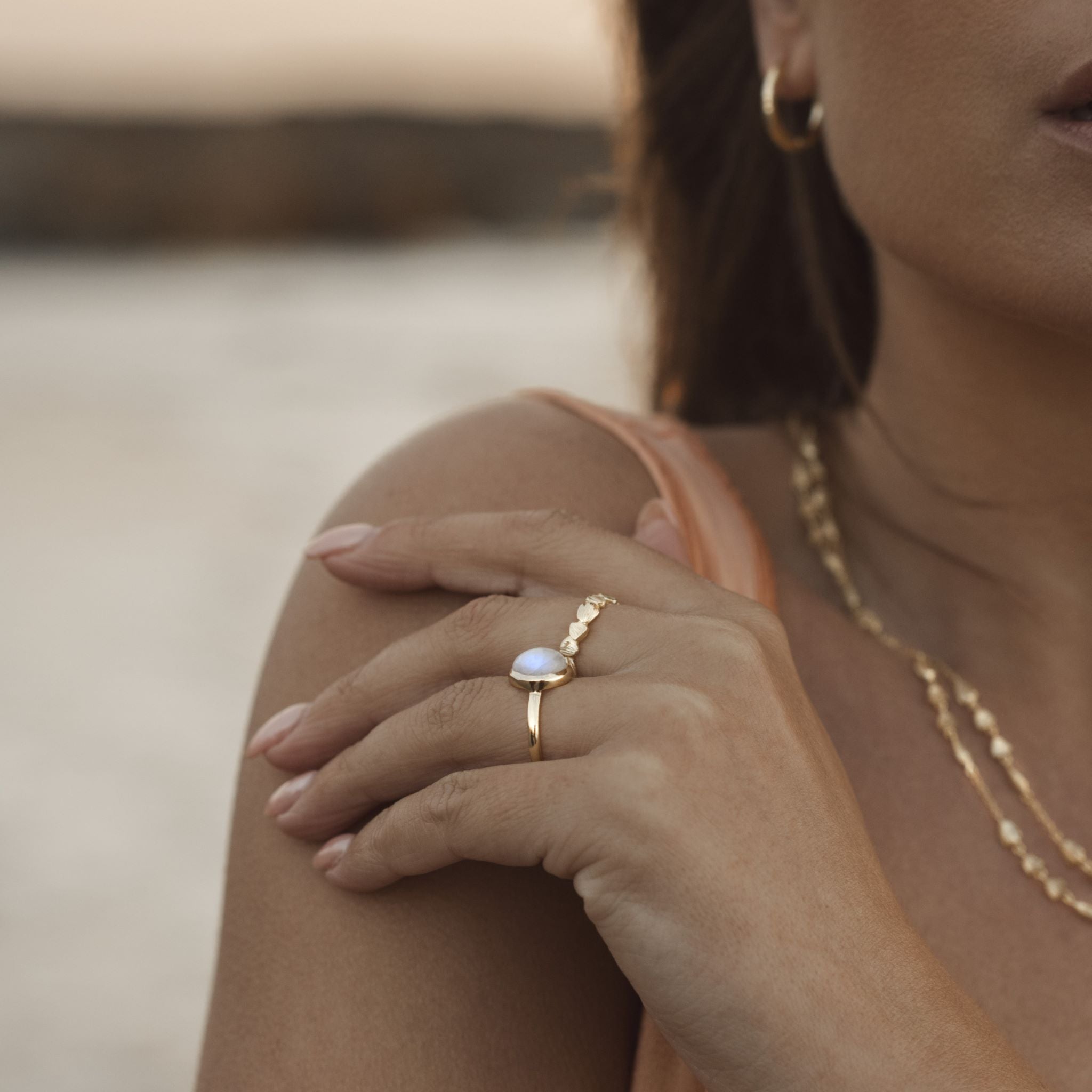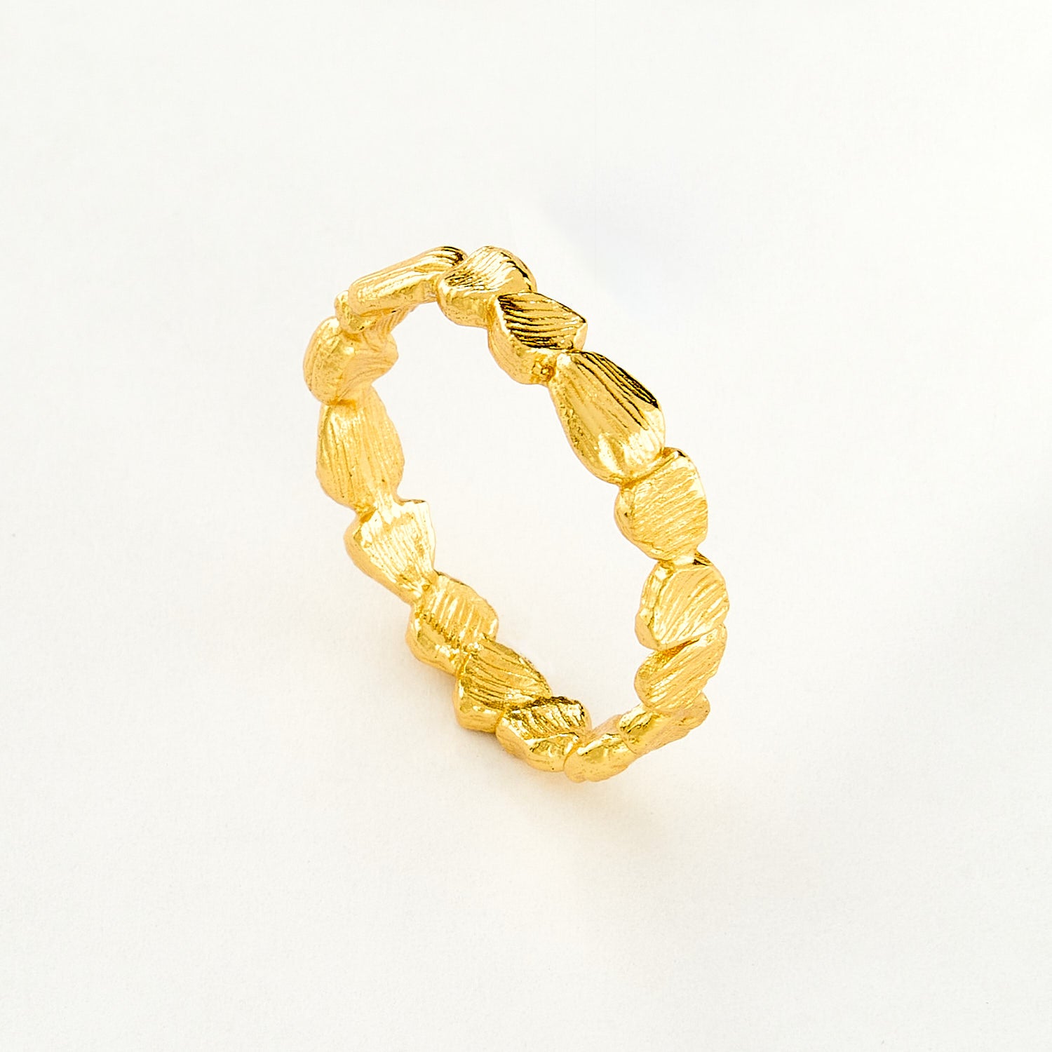 Channel the summer vibes with the Ella ring, featuring a row of tiny, textured shells.
