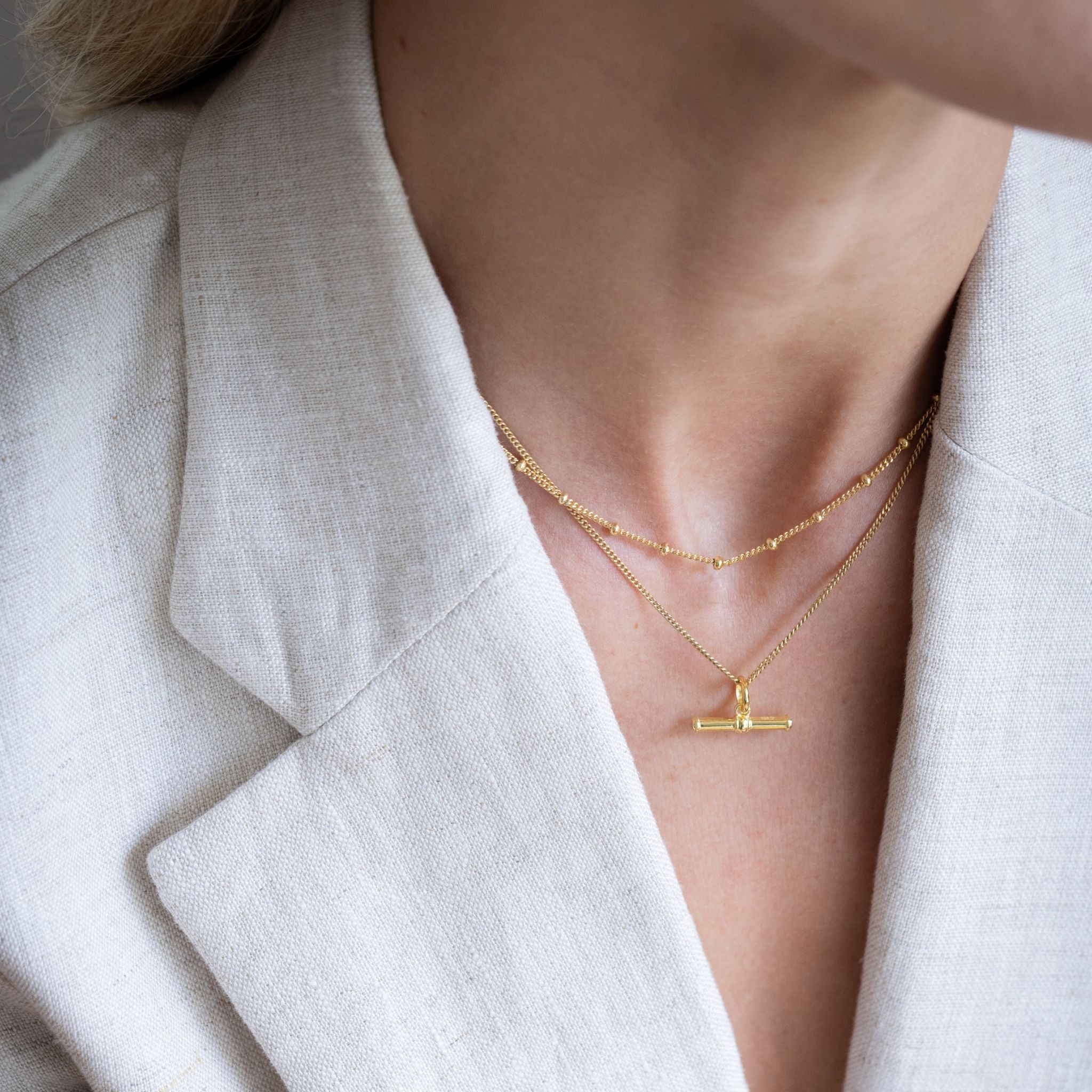 A classic for a reason, our T-Bar pendant on a medium curb chain, is a staple in every jewellery lover's collection! We have paired this pendant with our heavy curb ball chain, which is interspersed with polished beads, to elevate even the simplest outfit.
