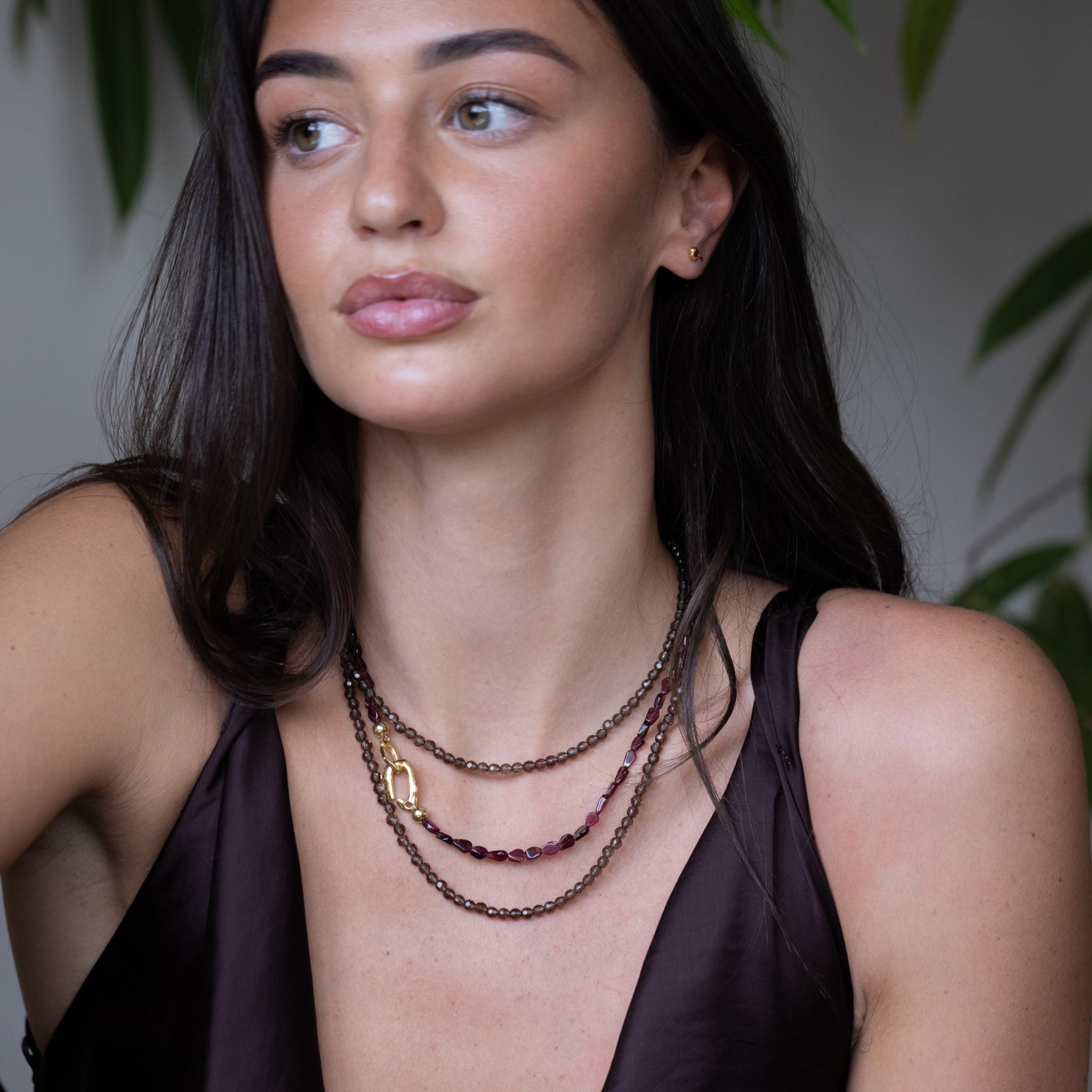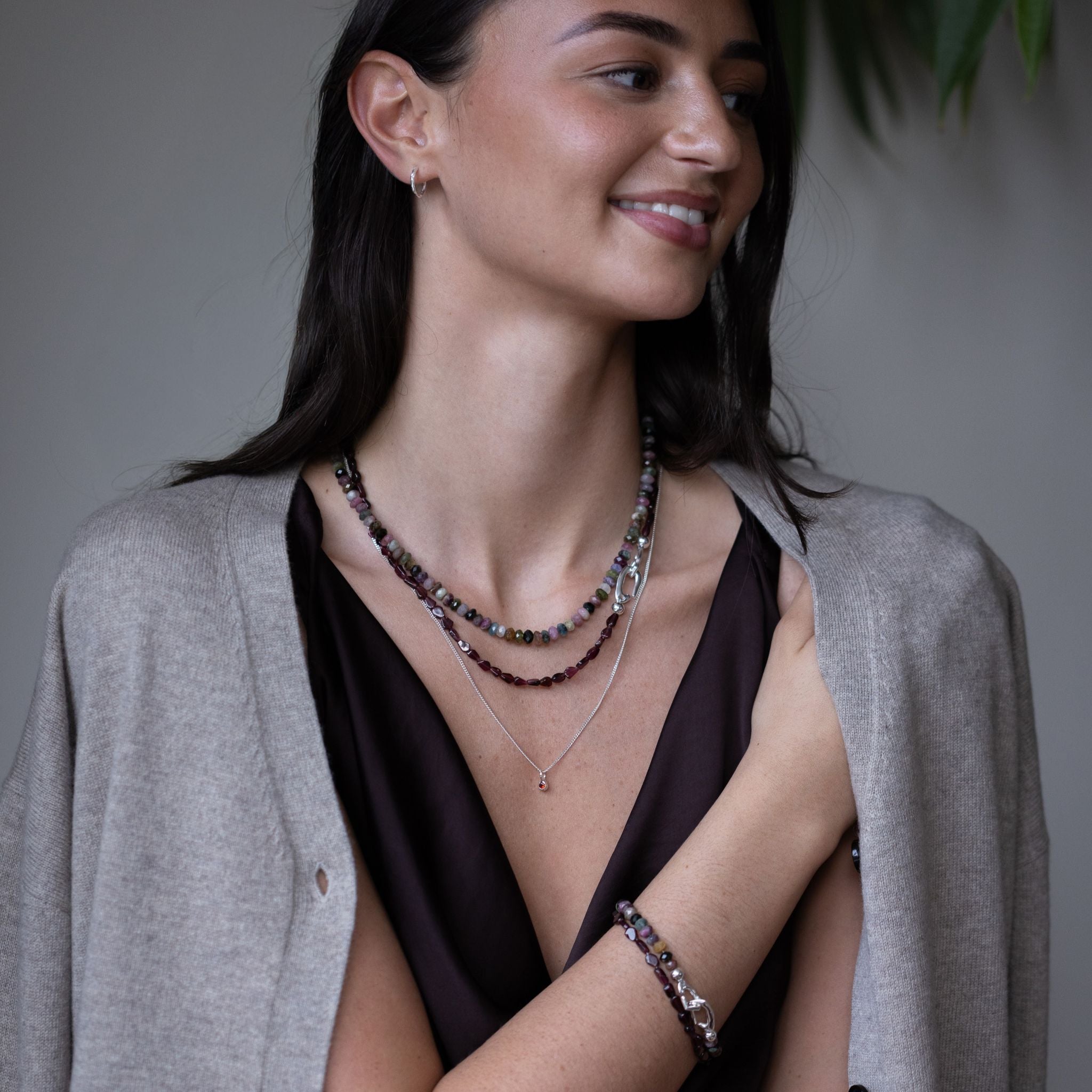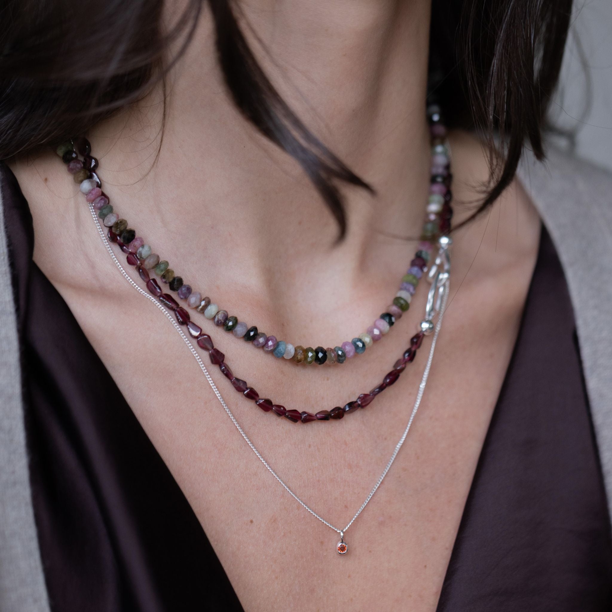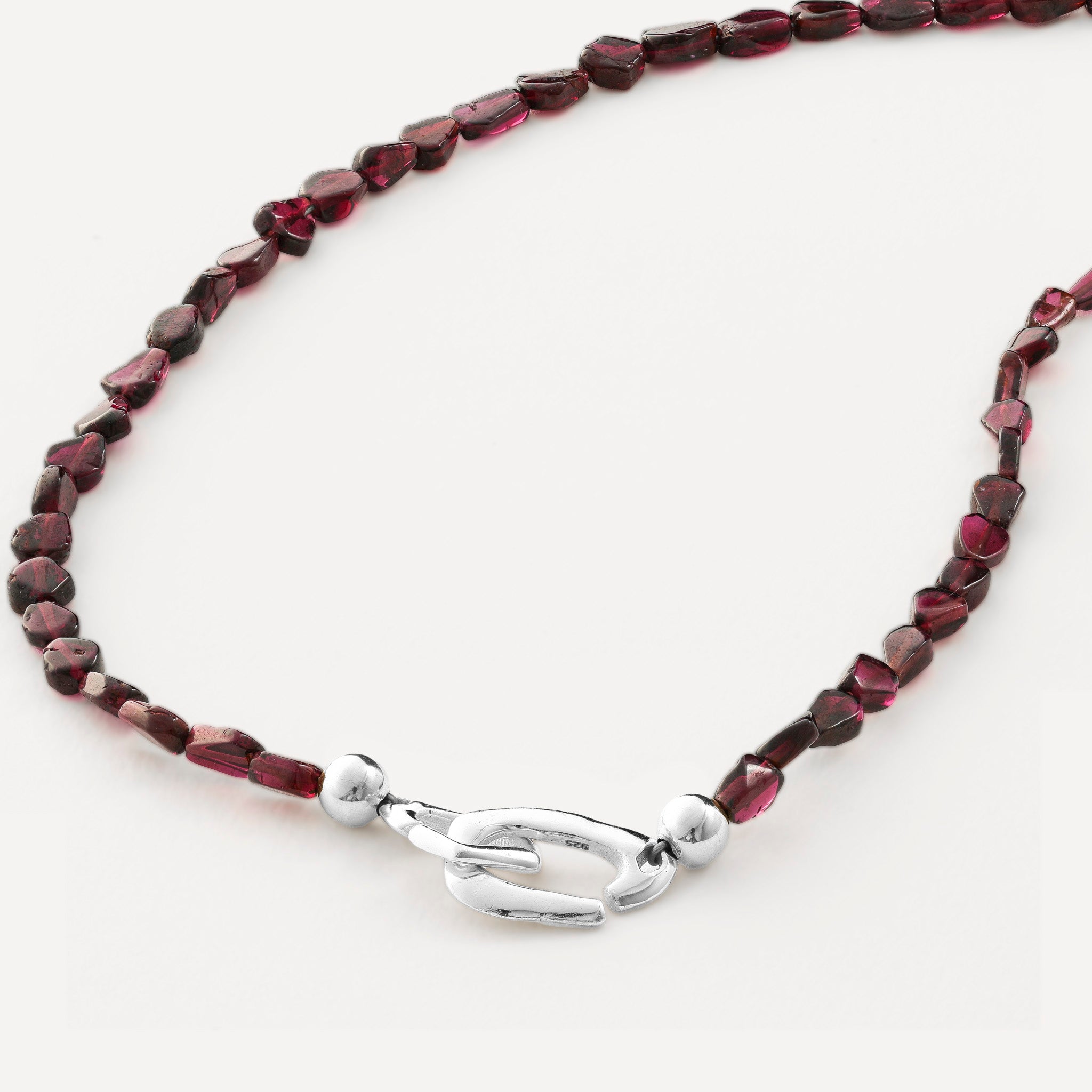 Showcasing the natural beauty of our planet in its rawest form, this striking chunky necklace features one of the most spectacular natural Garnet gemstones. Layer up with a merrow pendant or long beaded chain for a relaxed, boho vibe, or wear solo as a strong statement piece.