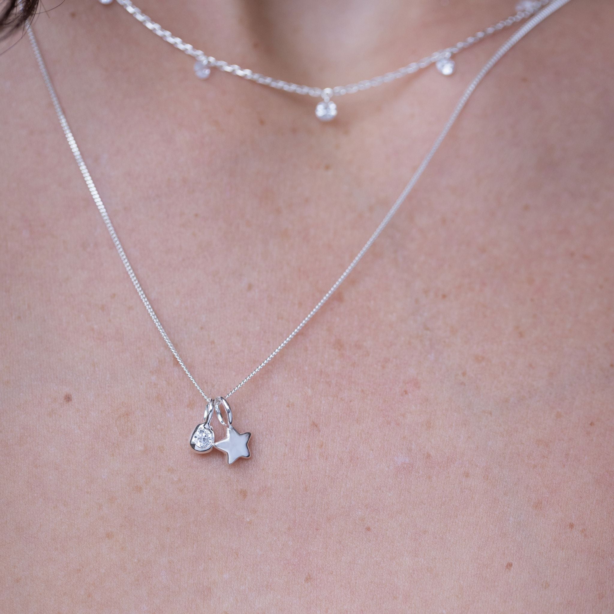 Our Guiding Star pendant features 2 twinkling charms - a sparkling white CZ to light your way, and a tiny star charm to guide you.