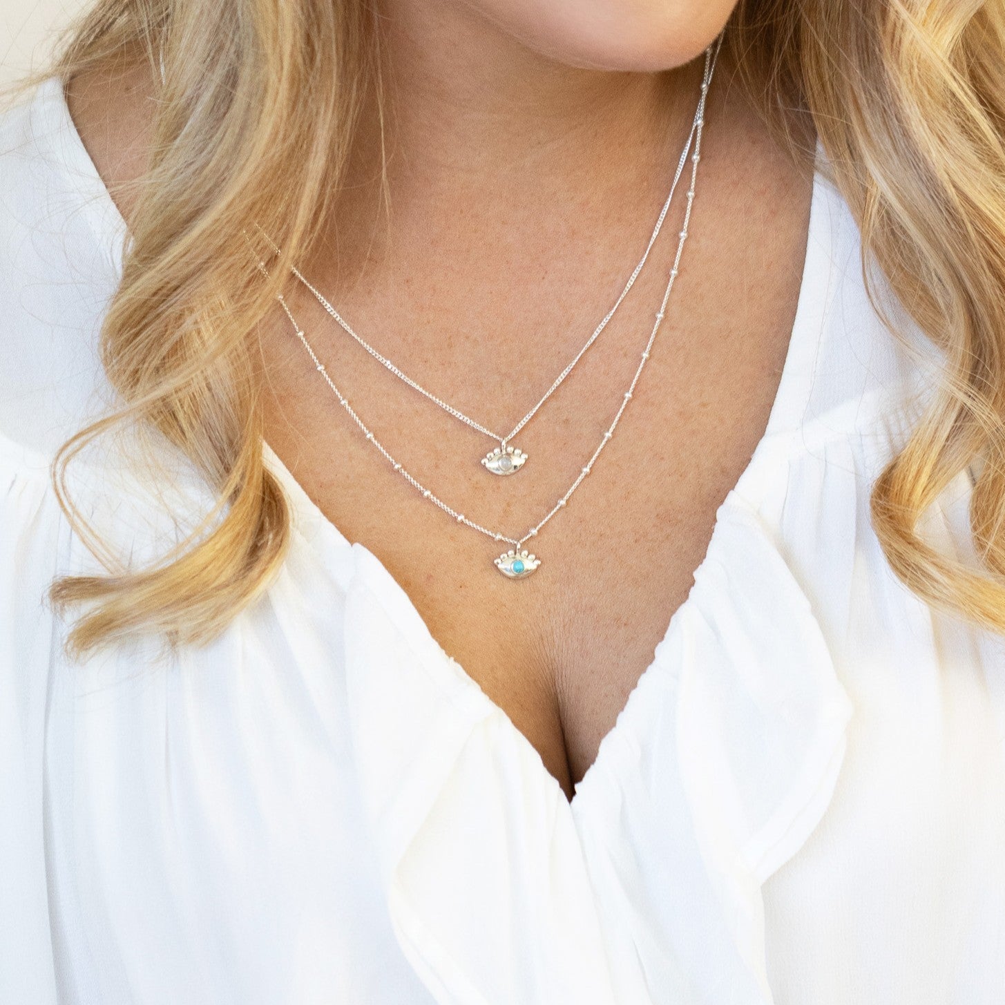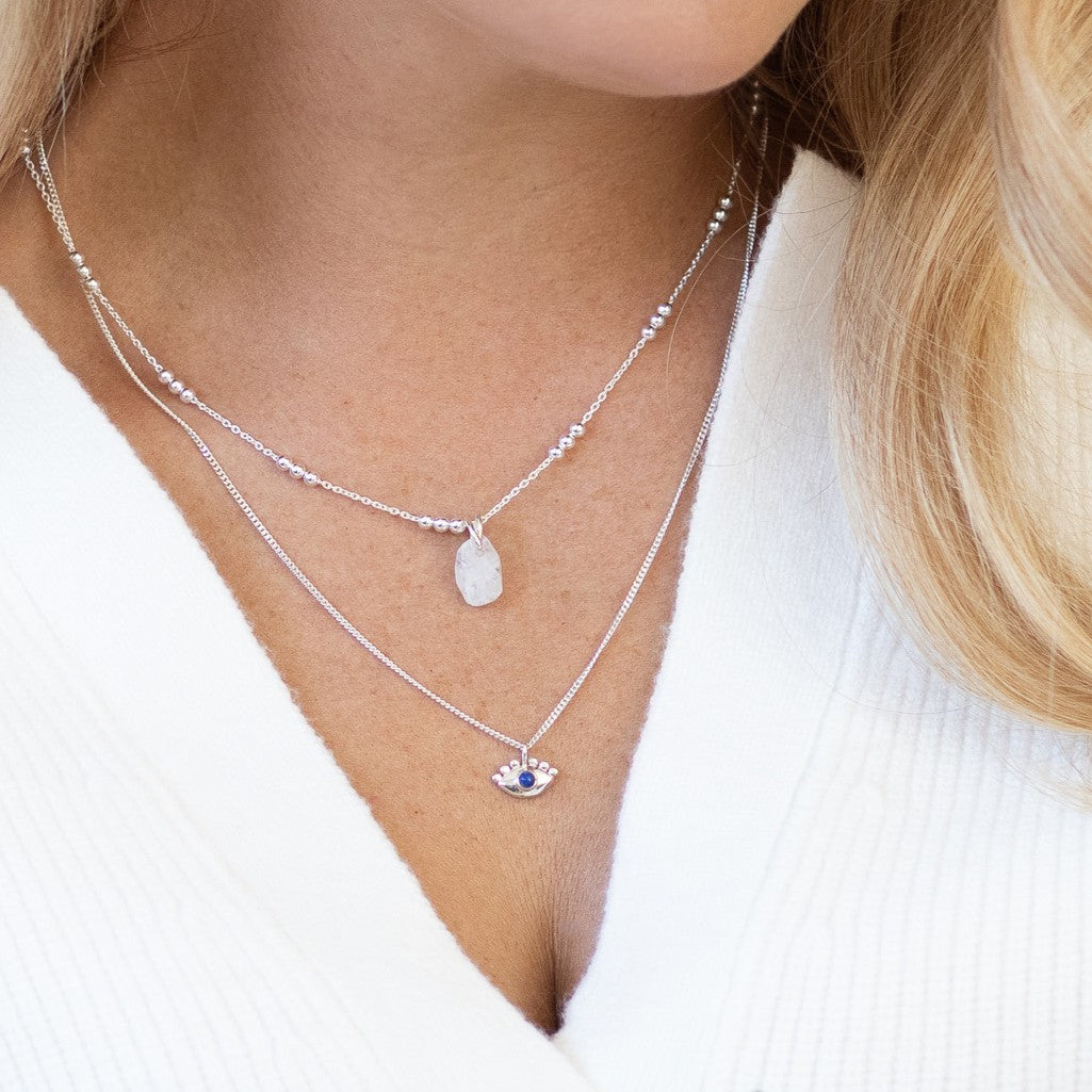Our evil eye pieces offer protection and intuition as well as the individual benefits and powers of your chosen crystal or gemstone. Amplify the intention and healing power of your chosen piece by adding a secret enhancement charm, whether Clear Quartz or Amethyst. You can view enhancement charm HERE