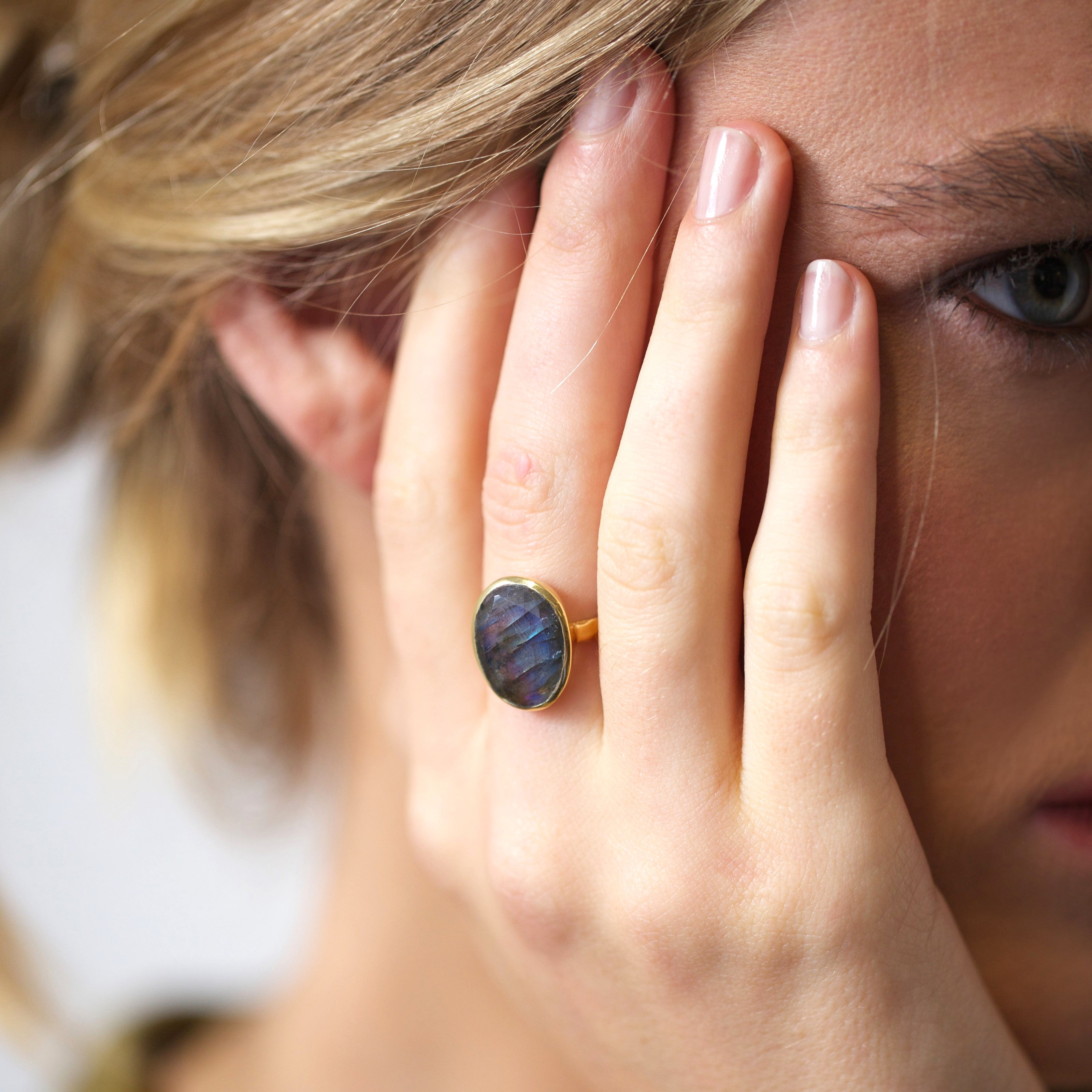 Our beautiful lago rings are crafted in recycled sterling silver and feature a range of vibrant, natural, hand cut gemstones. Also available in 18ct gold vermeil.