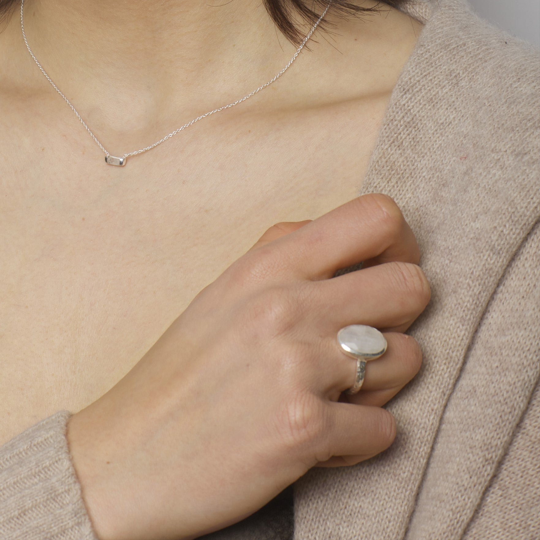 The gently hammered band captures a beautiful, natural texture and has a soothing, grounding feel beneath your fingers. Available in 7 beautiful ethically sourced gemstones which each have a special meaning, the Lago ring is the perfect splash of colour and shine.