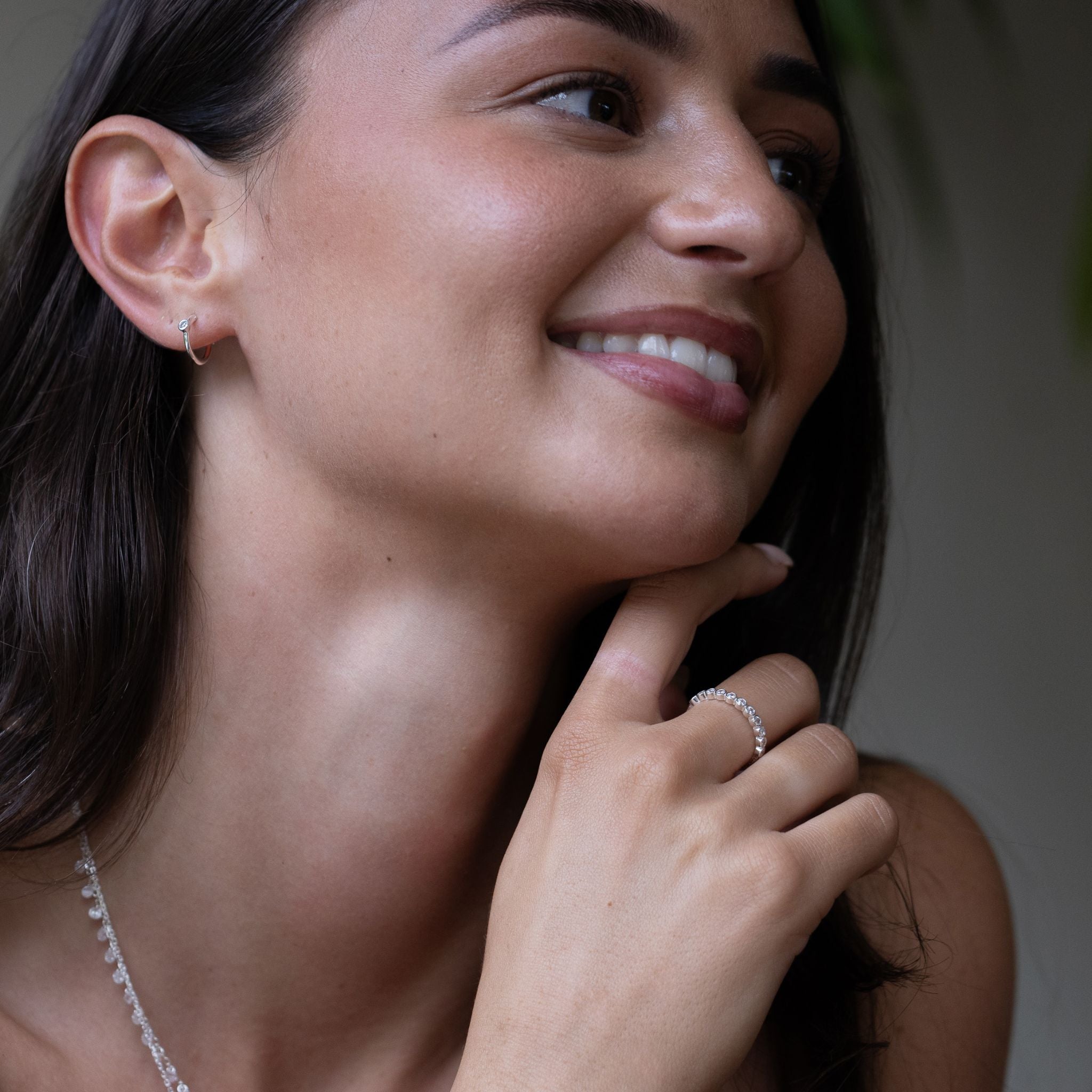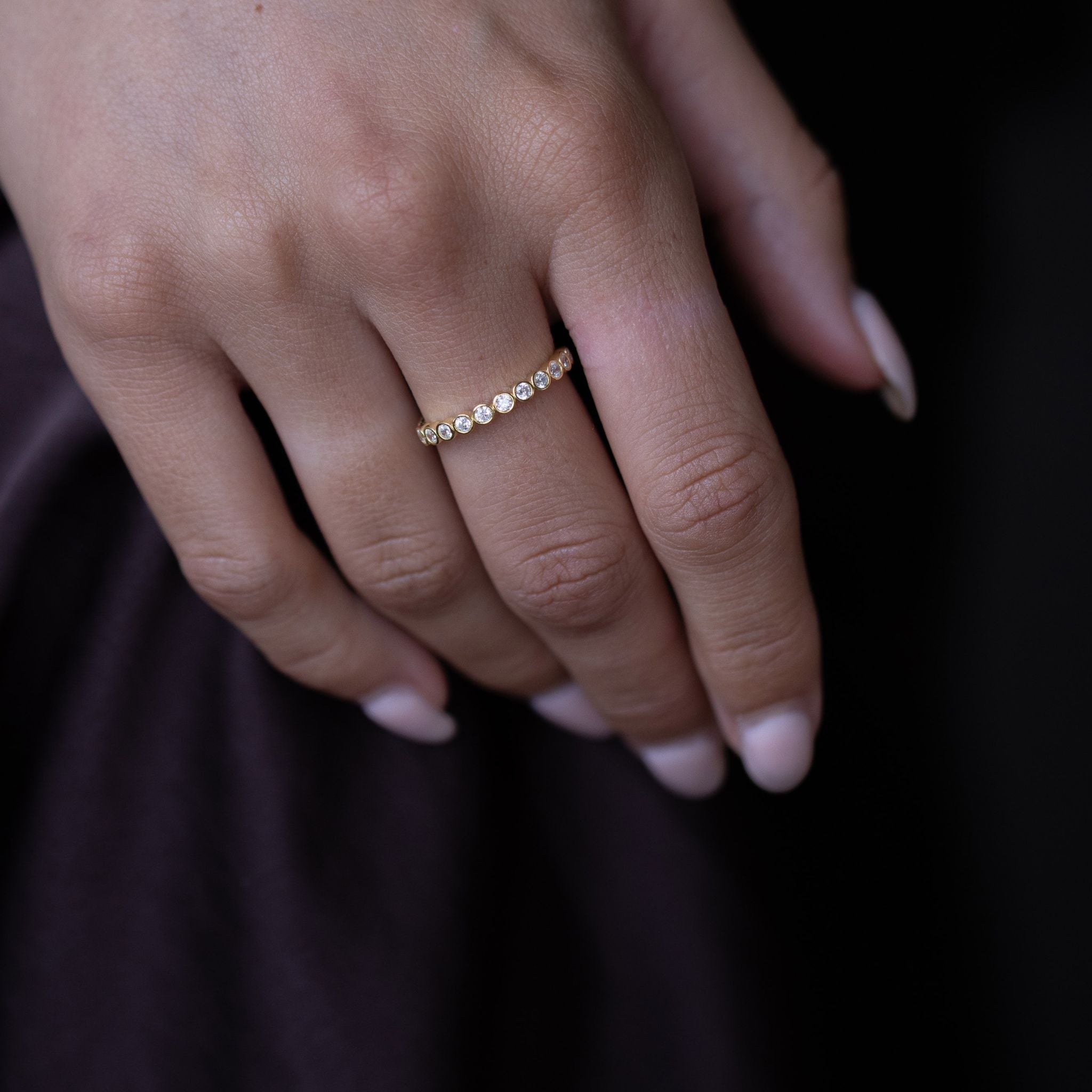 Our Lyra eternity ring is available in your choice of sterling silver or 18ct gold vermeil.