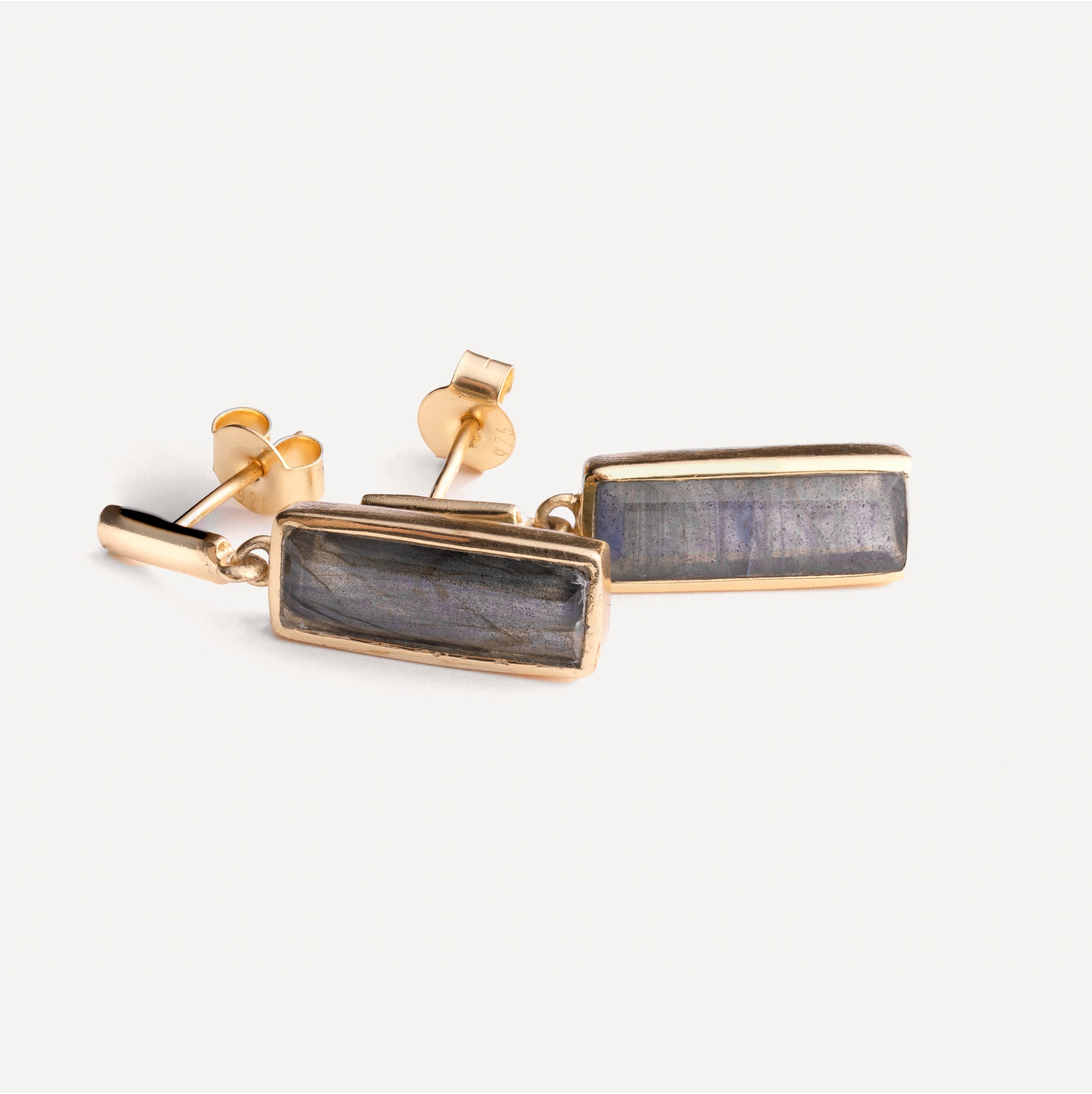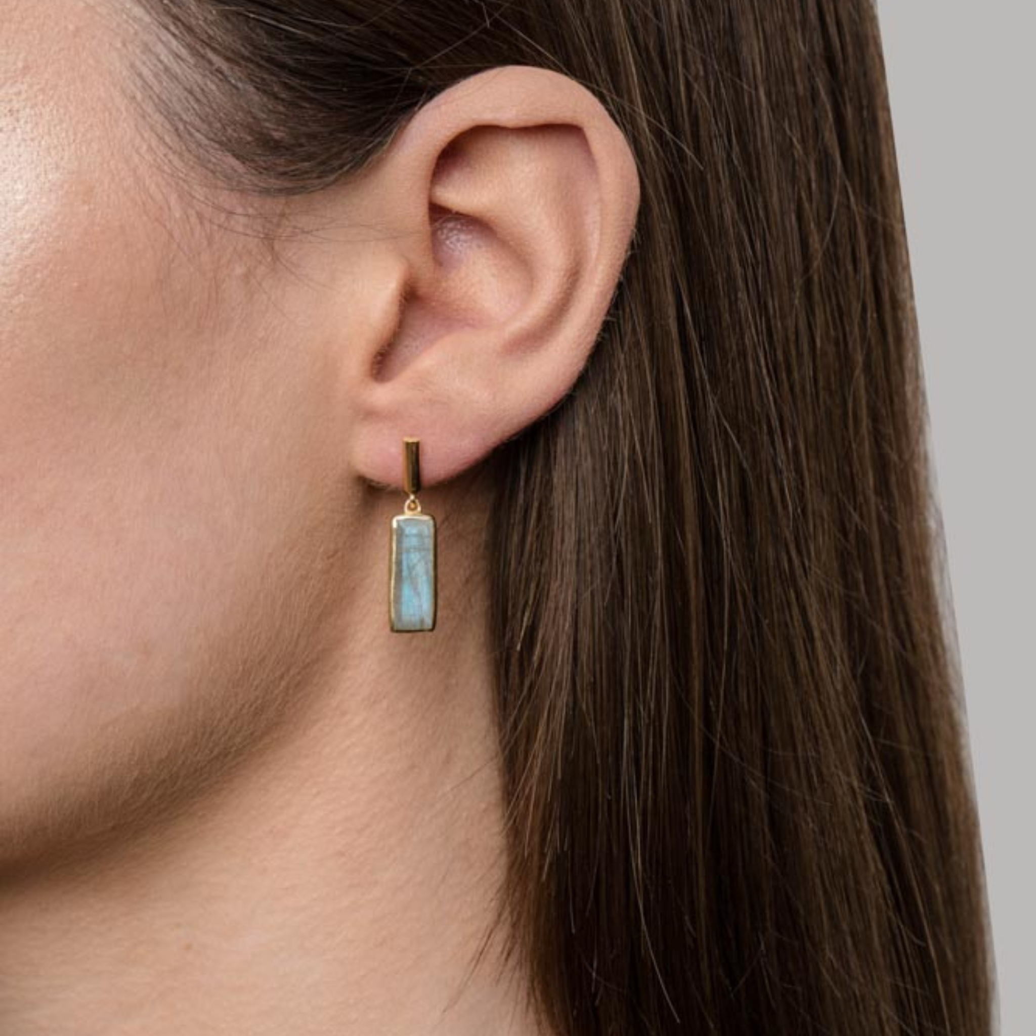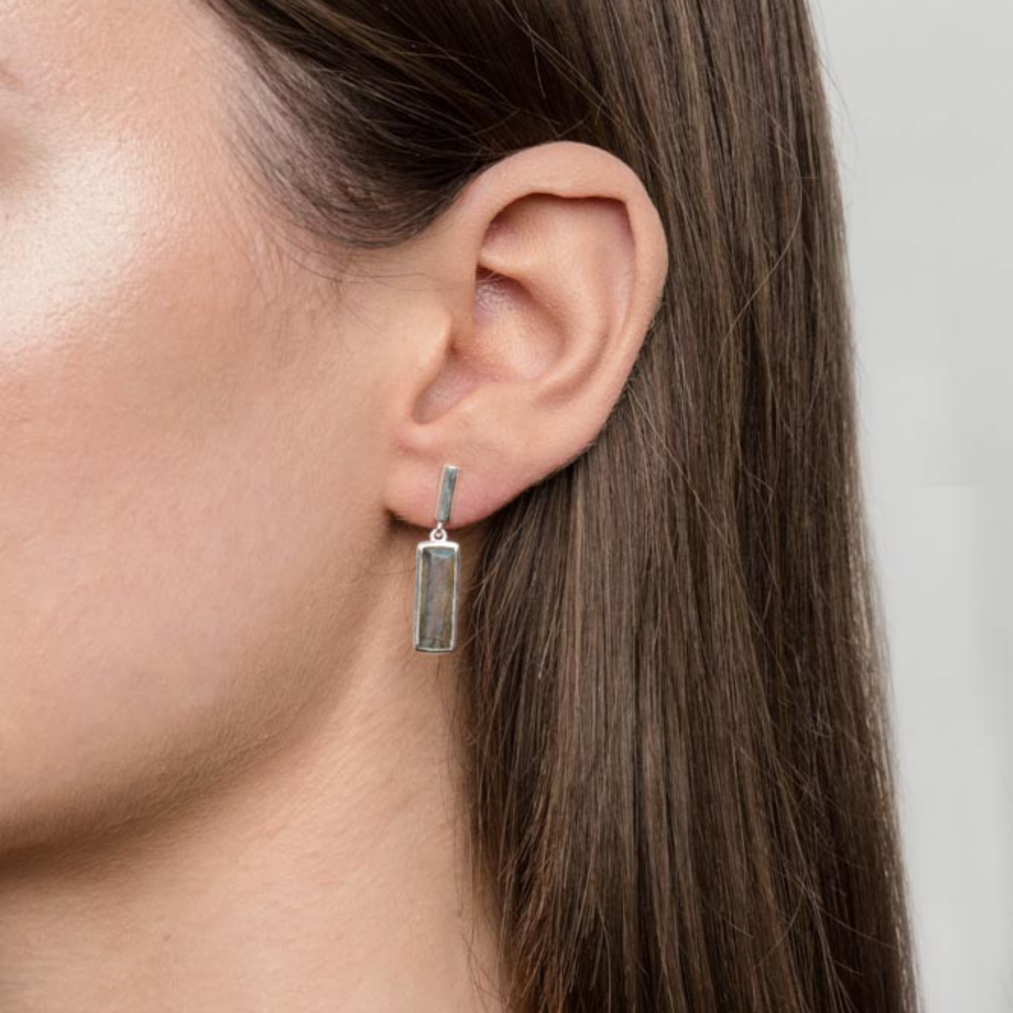 This piece shines a spotlight on beautiful Labradorite, accentuated with a shining sterling silver bar.