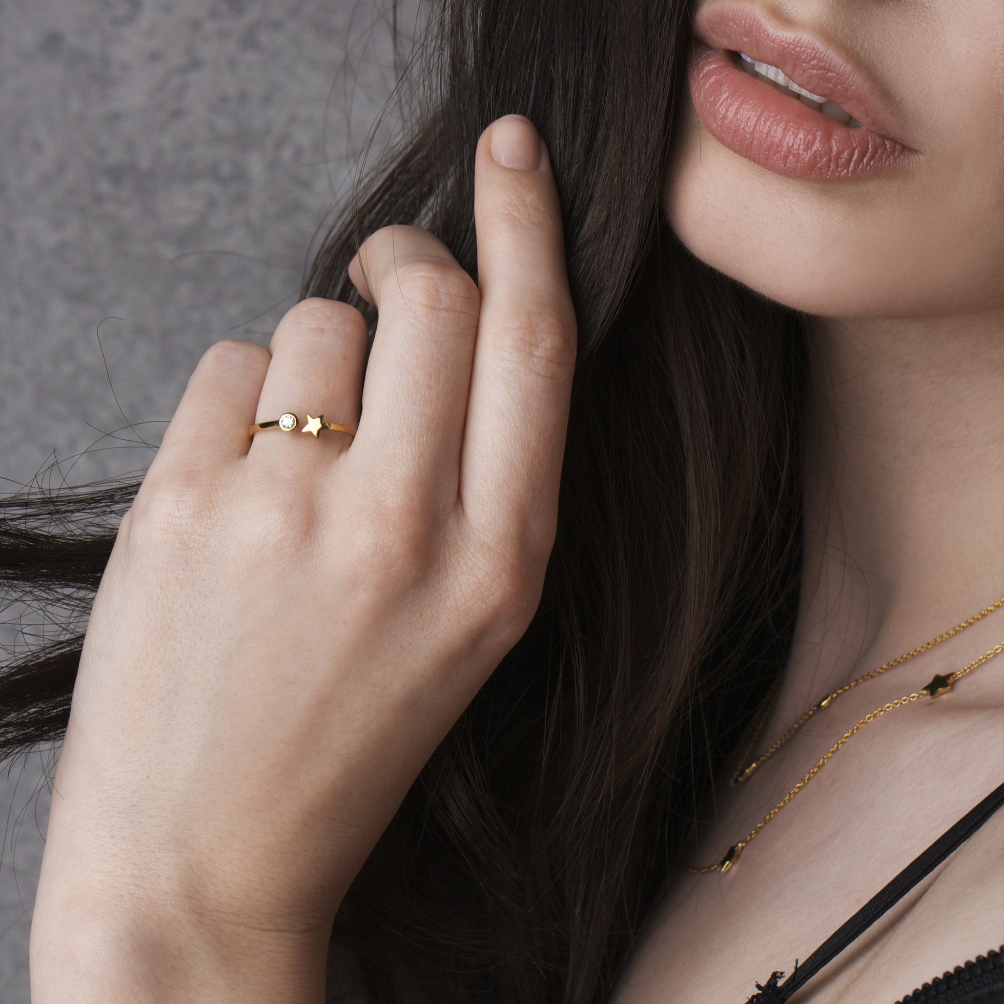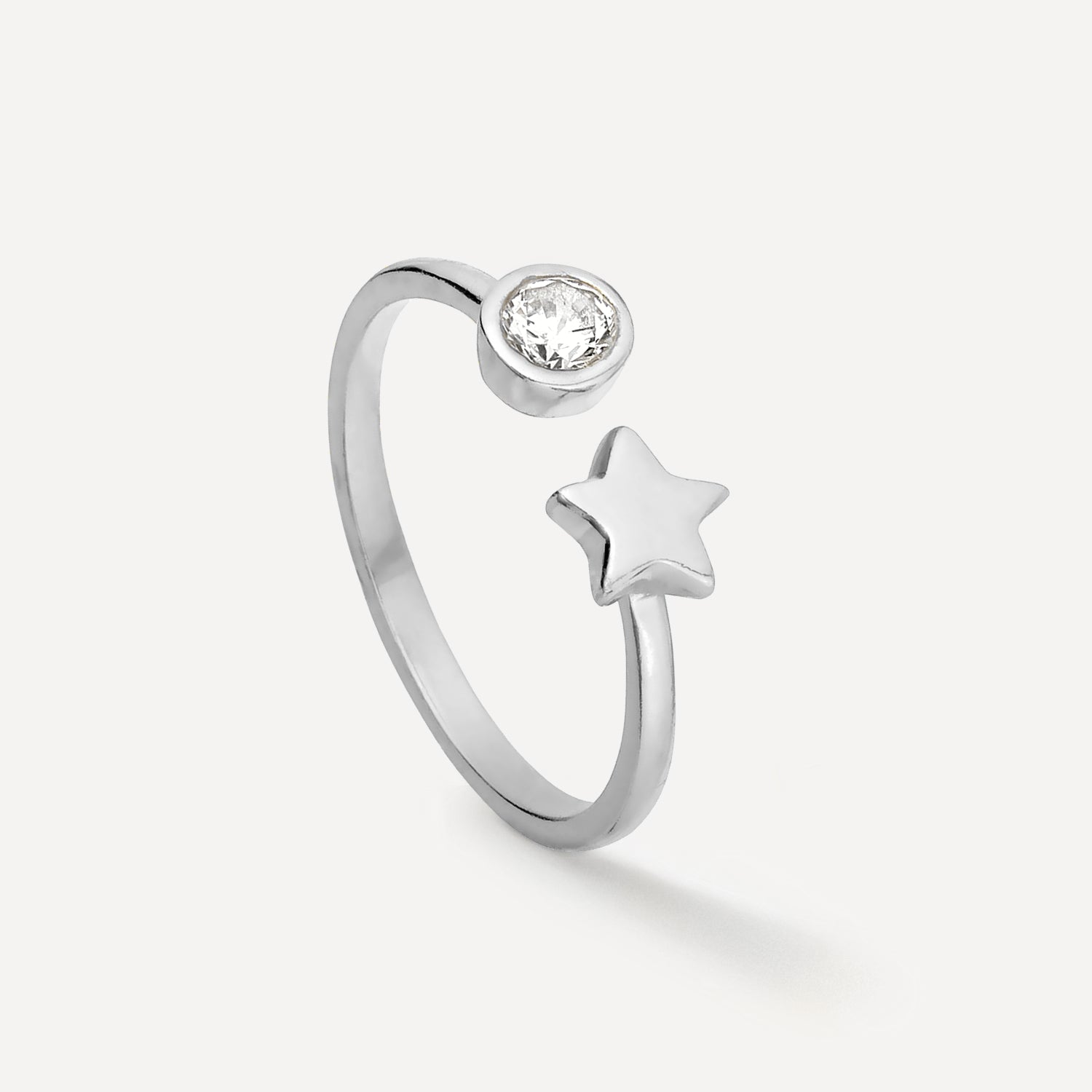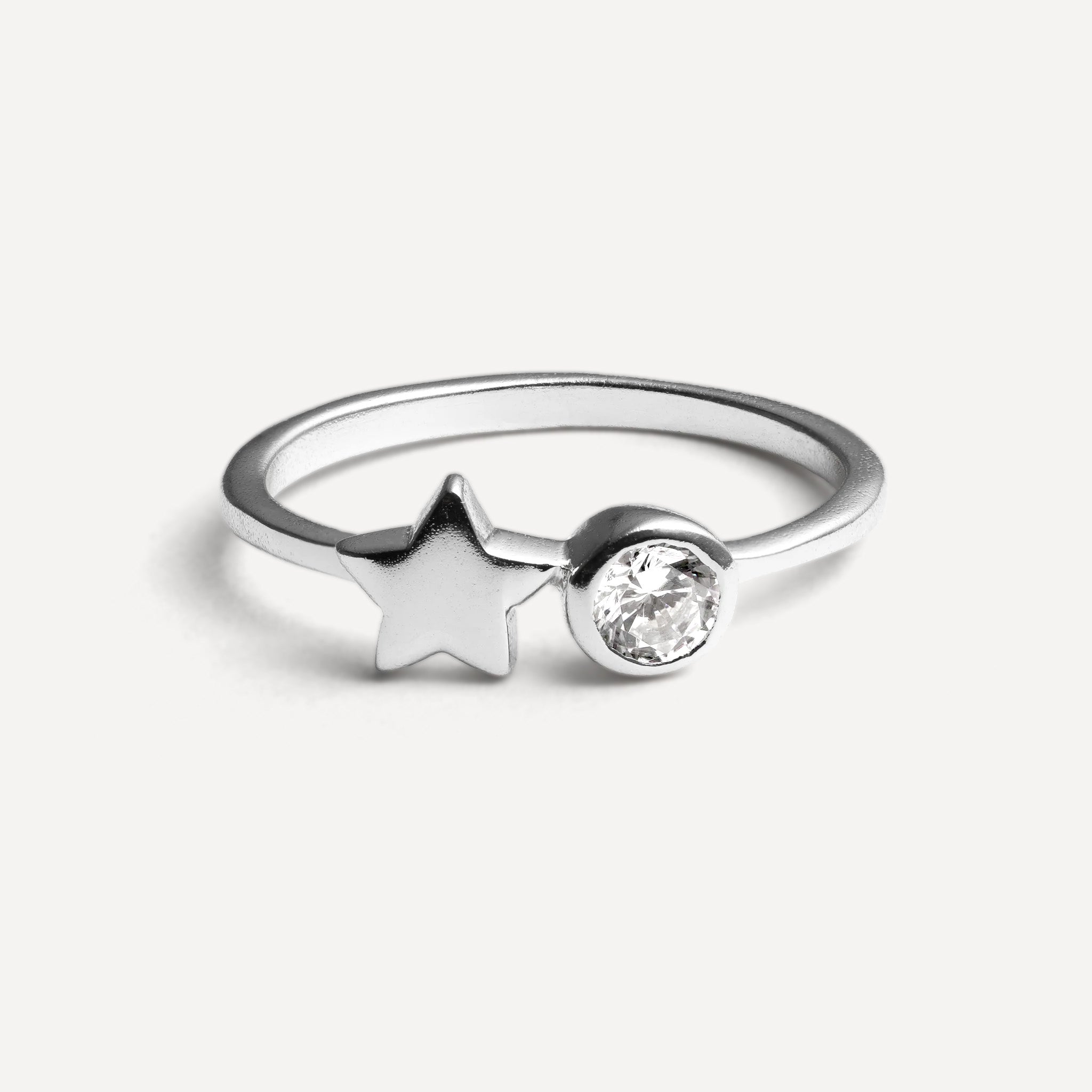 Our Open Skies ring features a twinkling cubic zirconia and is crafted from recycled sterling silver. Also available in 18ct yellow gold.