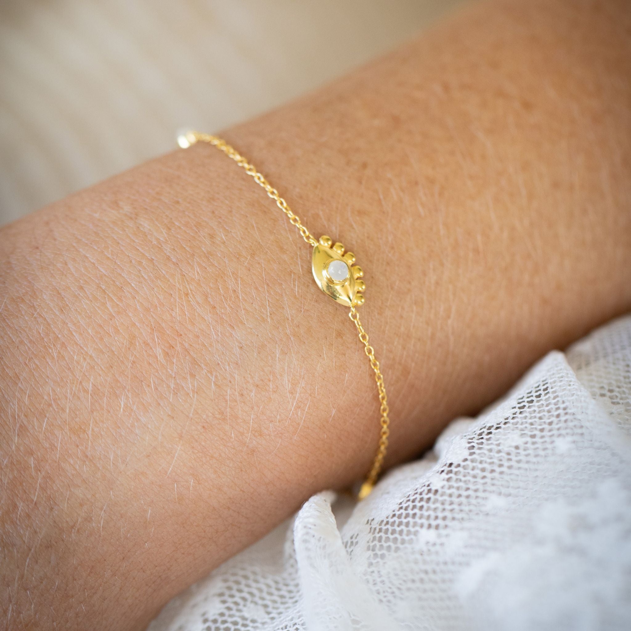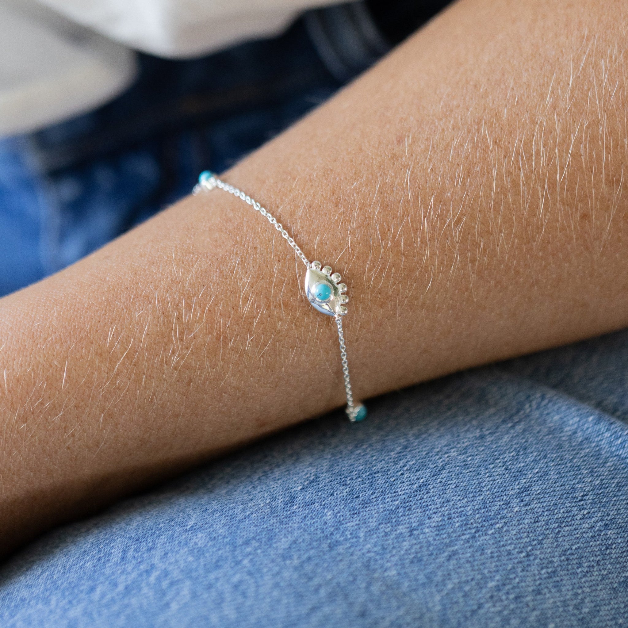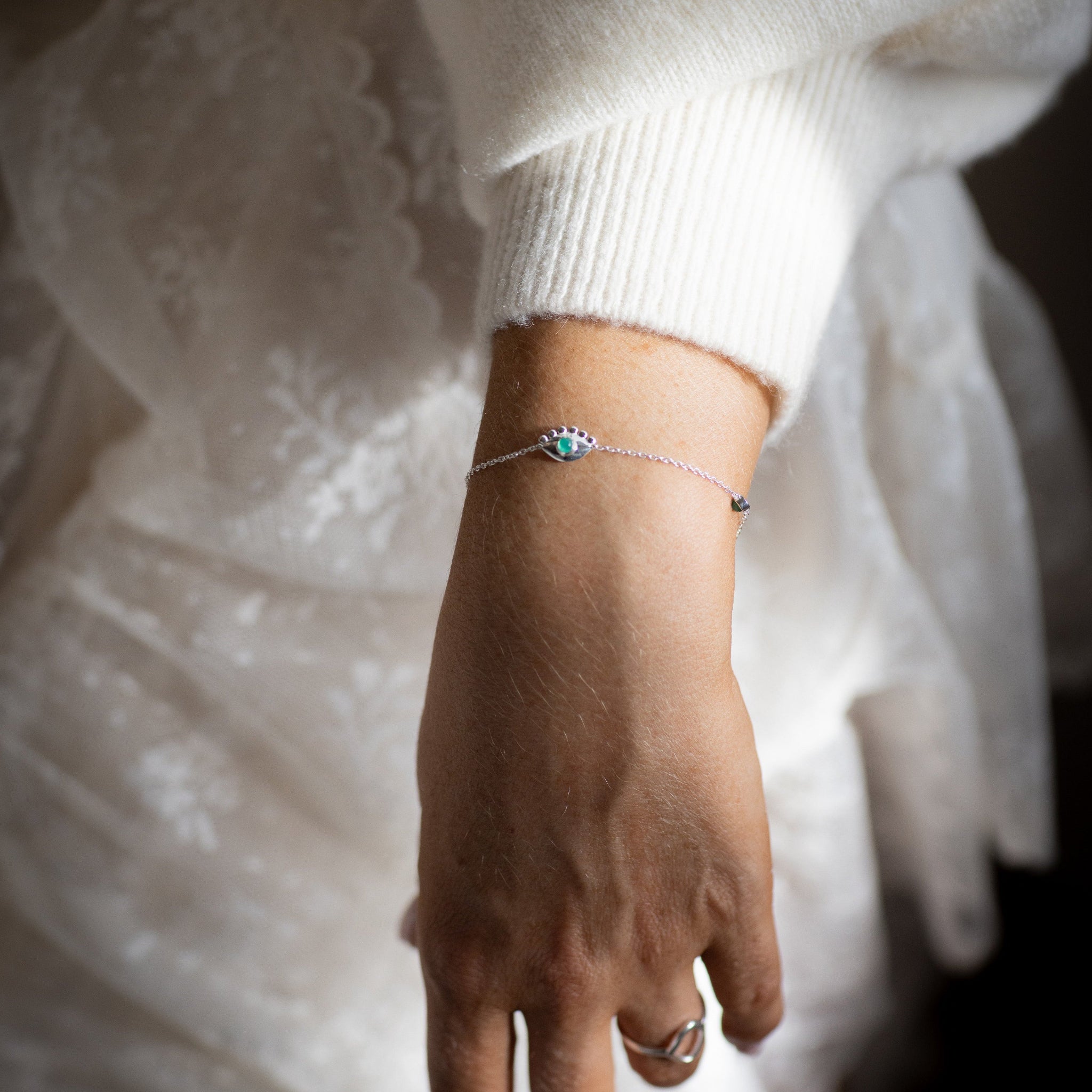 Dimensions Evil Eye : 7.8mm x 12.5mm. Bracelet Max Length 8"