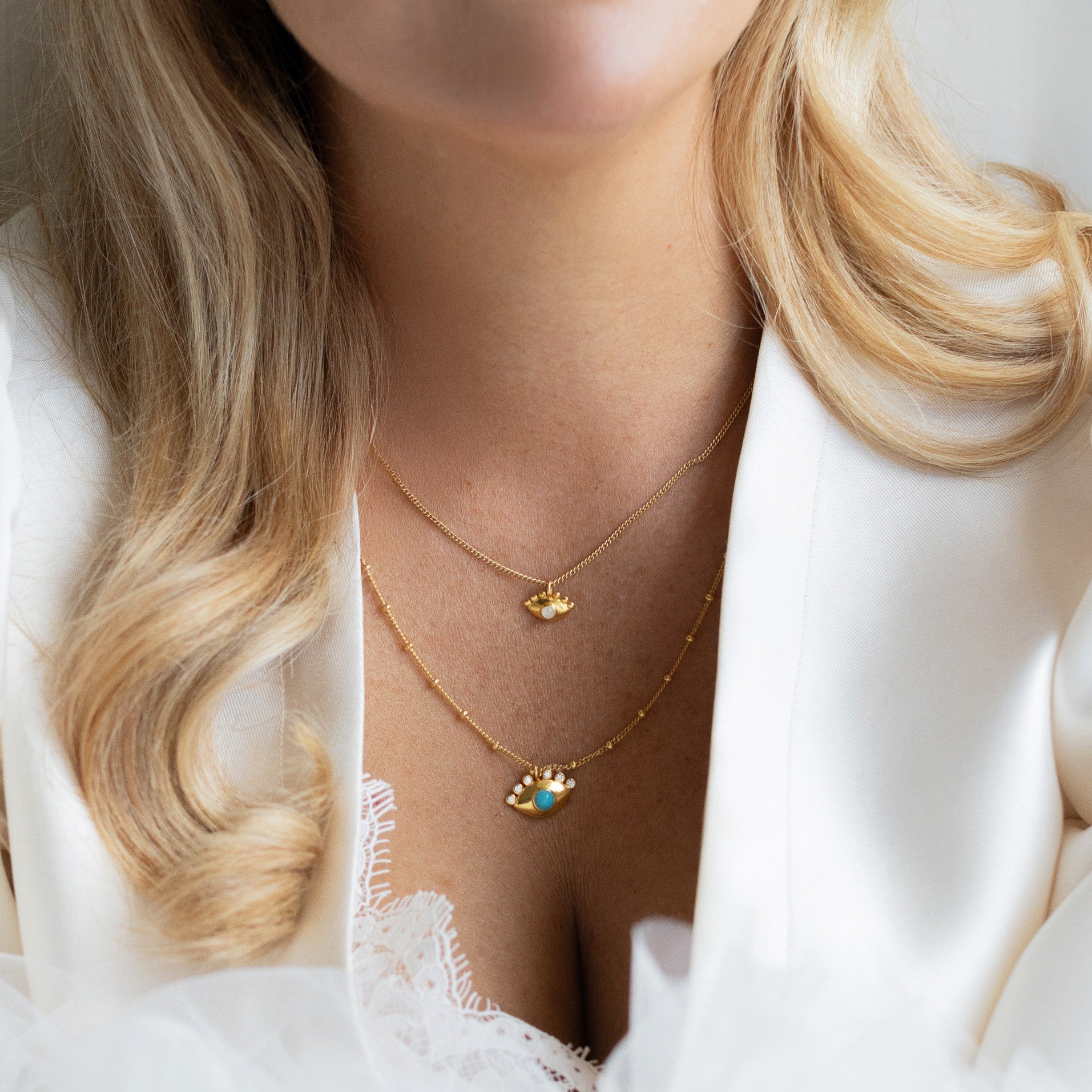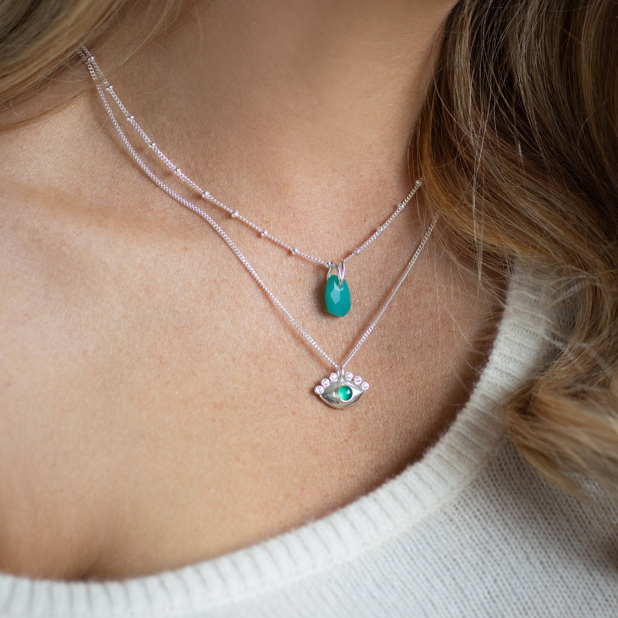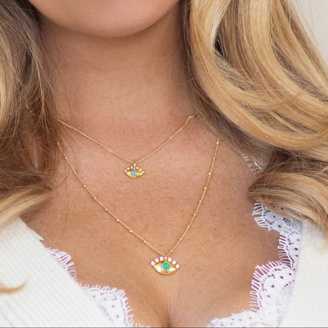 Our evil eye pieces offer protection and intuition as well as the individual benefits and powers of your chosen crystal or gemstone. Amplify the intention and healing power of your chosen piece by adding a secret enhancement charm, whether Clear Quartz or Amethyst. You can view enhancement charm HERE