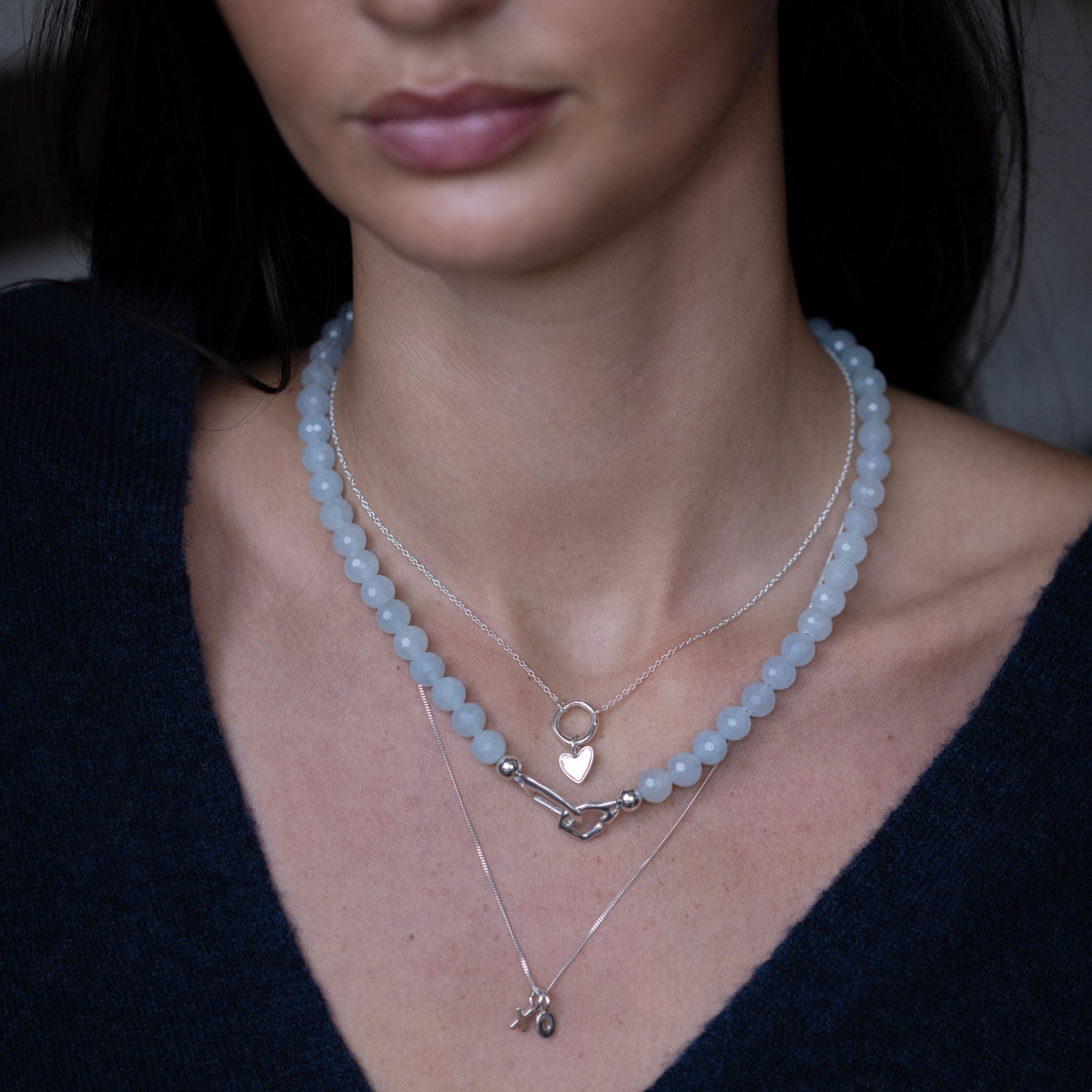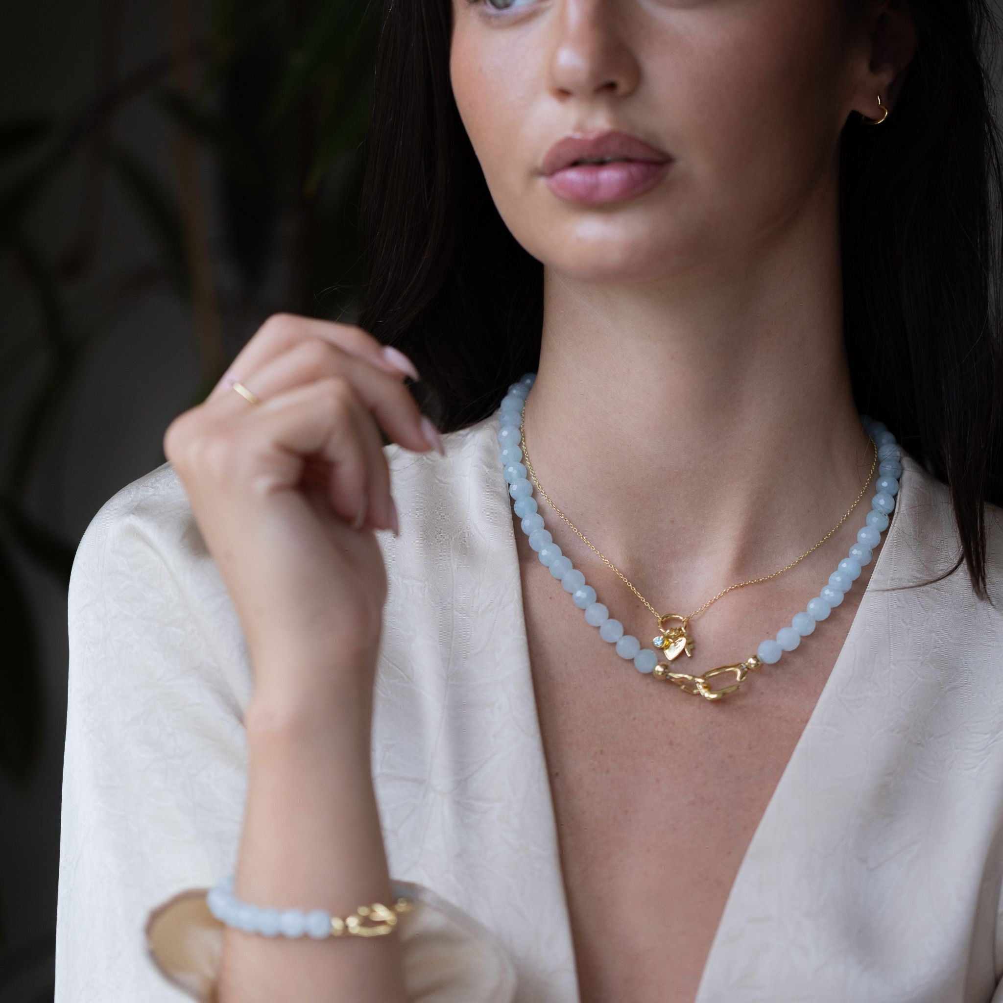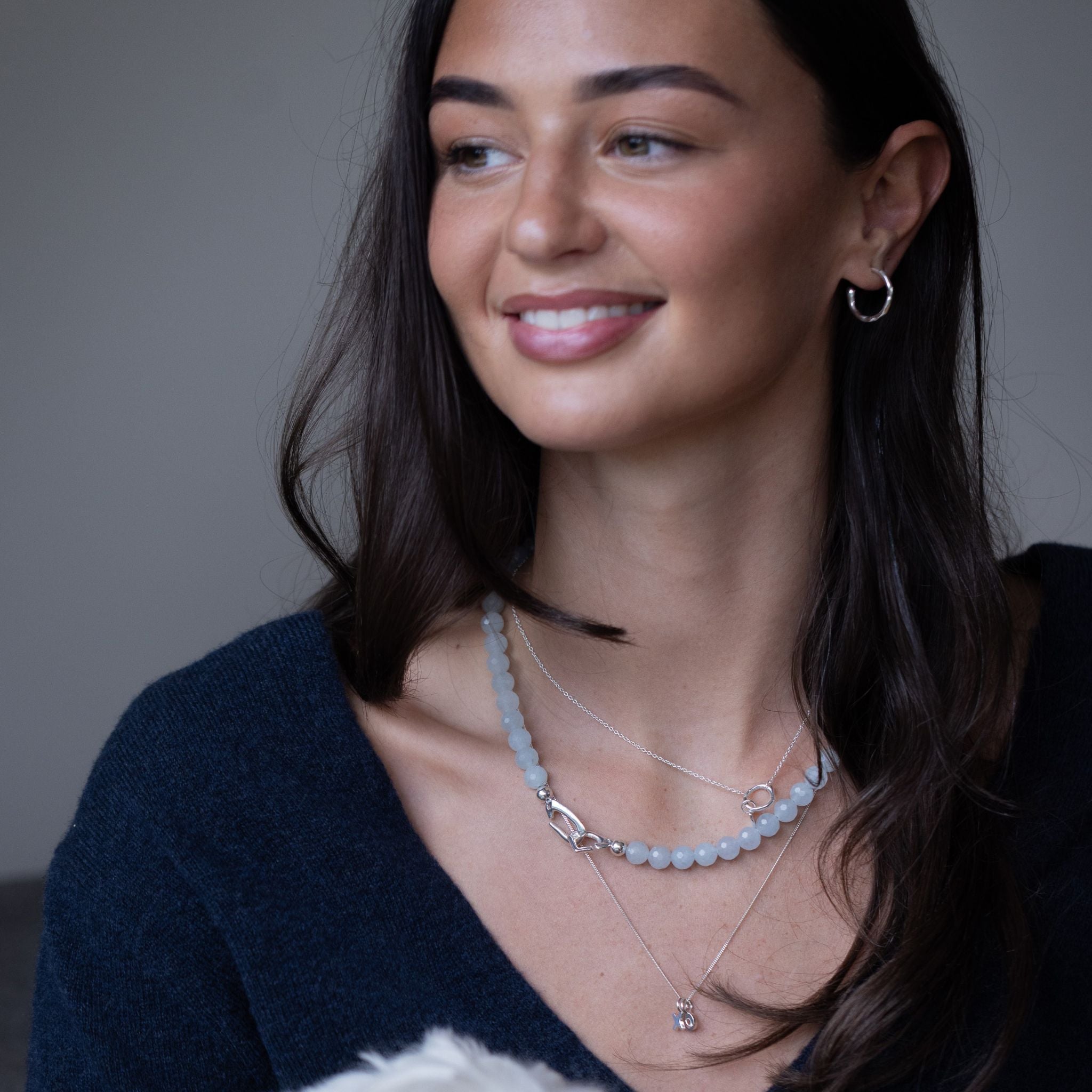 Showcasing the natural beauty of our planet in its rawest form, this striking chunky necklace features one of the most spectacular natural Aquamarine gemstones. Layer up with a merrow pendant or long beaded chain for a relaxed, boho vibe, or wear solo as a strong statement piece.