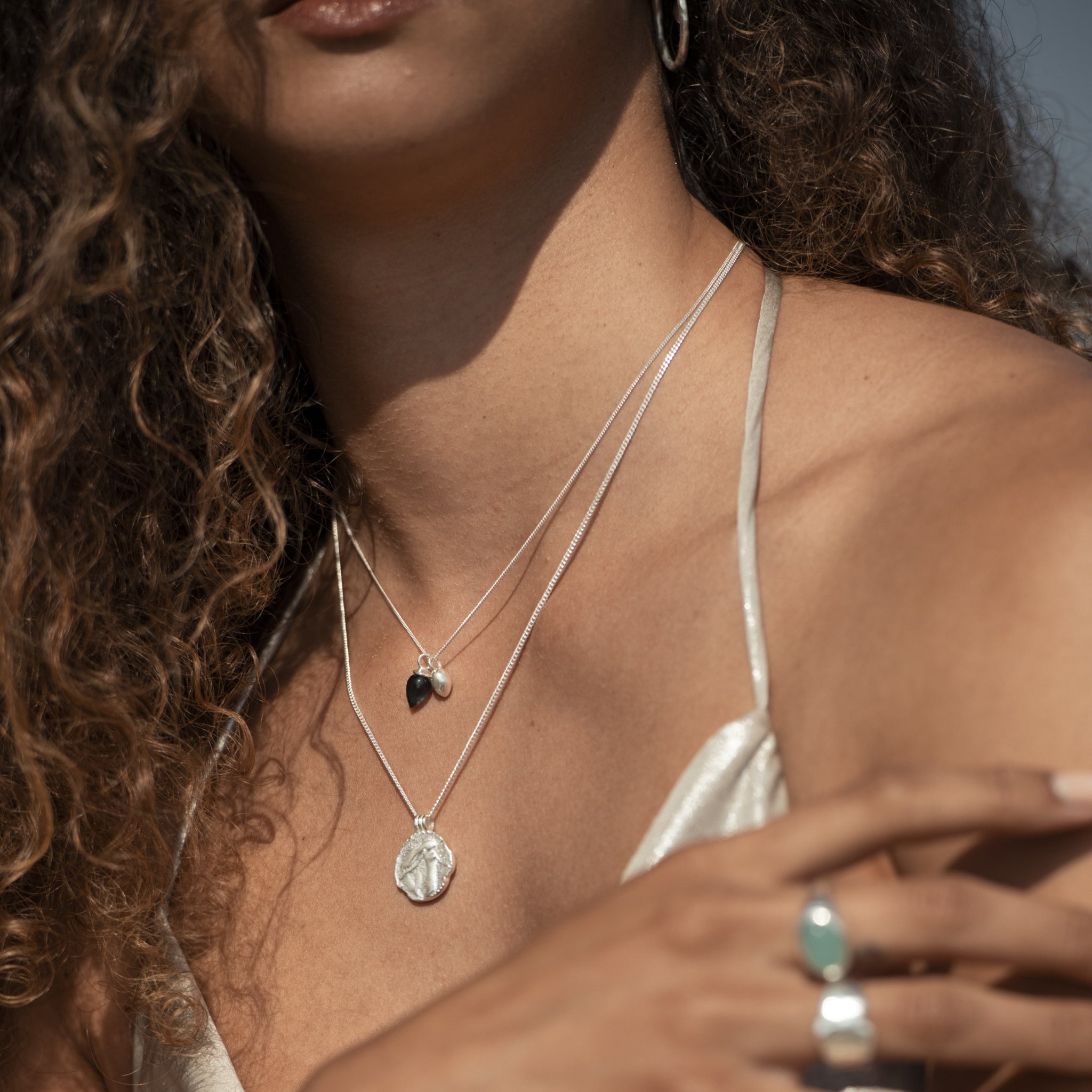 Our droplet necklace is lovingly crafted with recycled sterling silver and ethically sourced hand-cut gemstones.