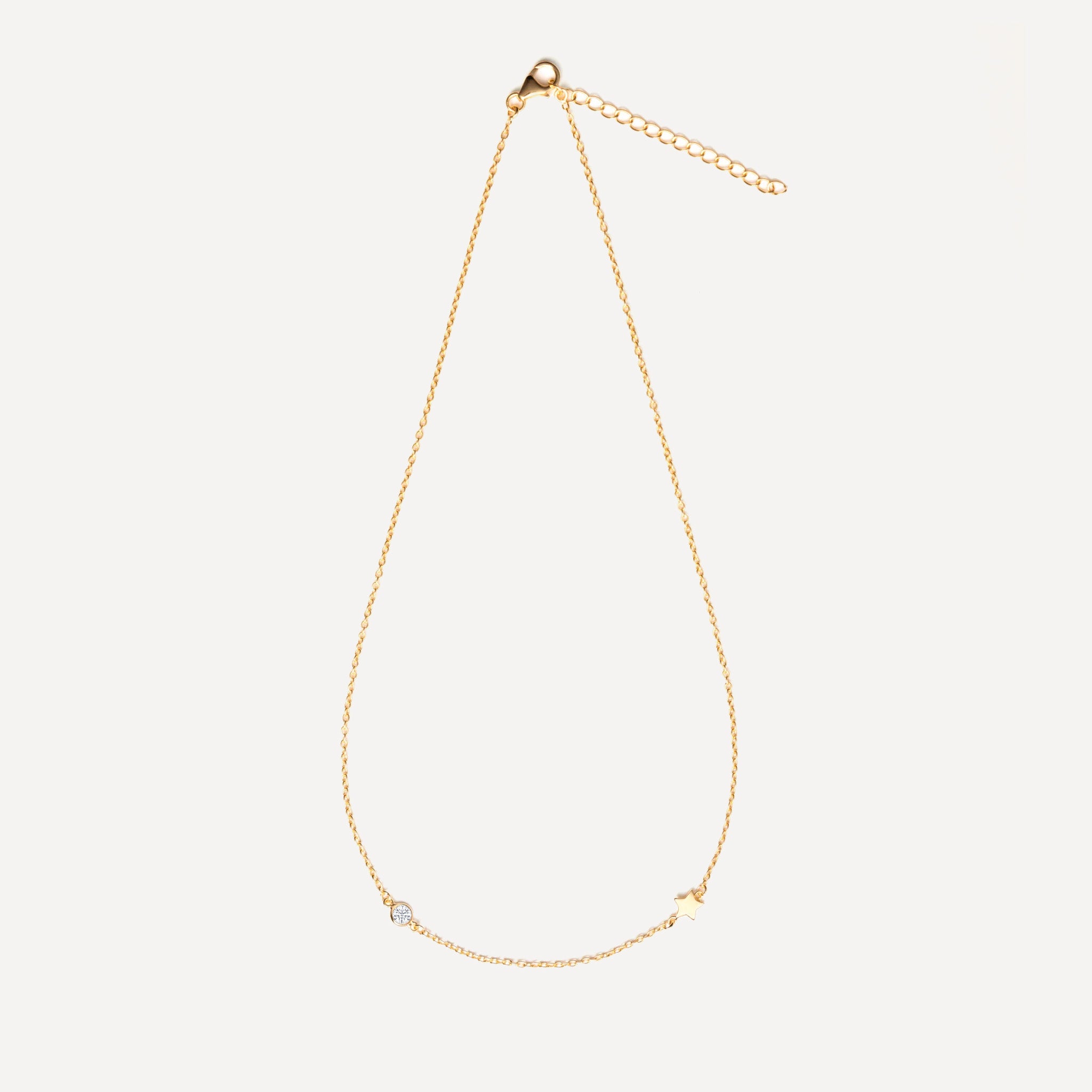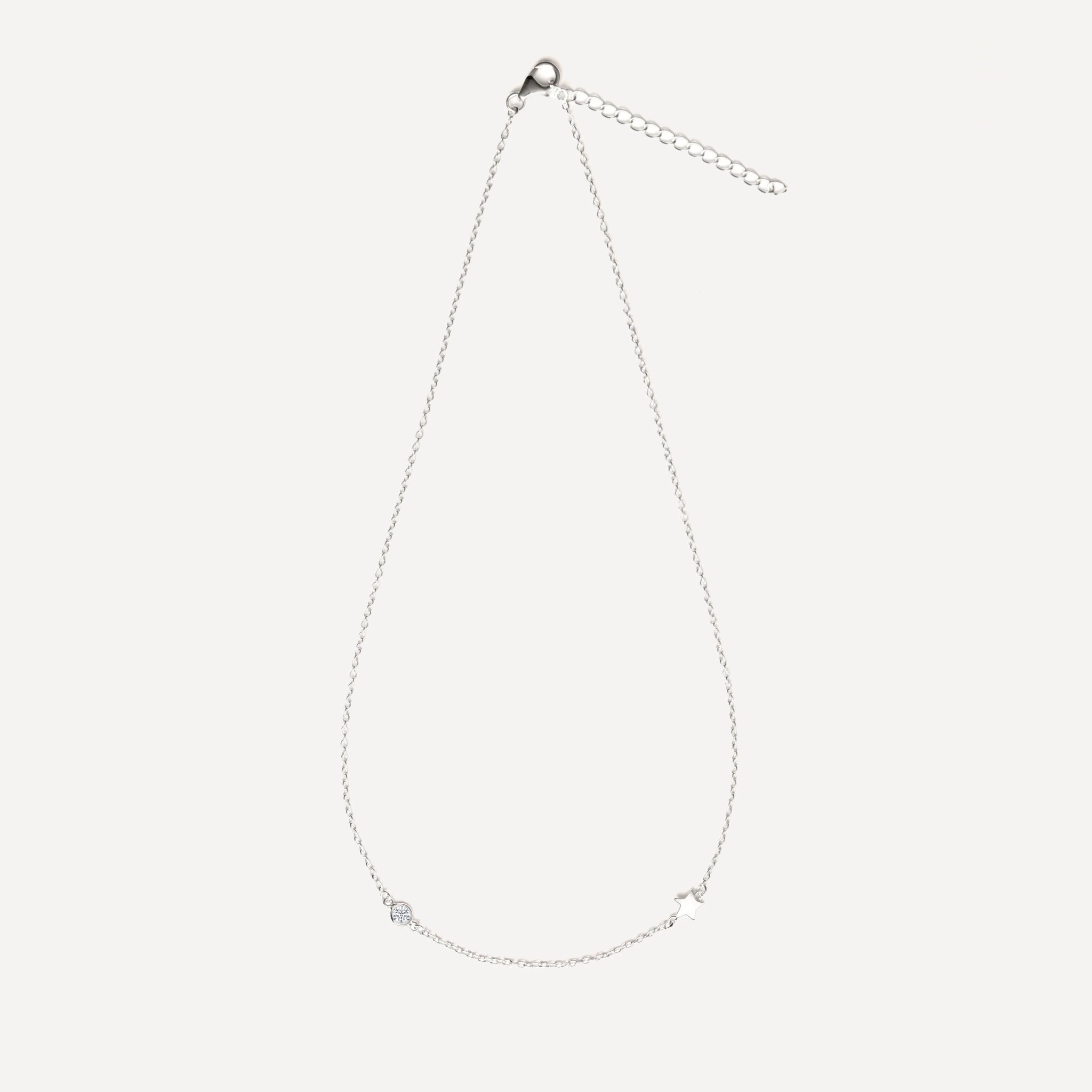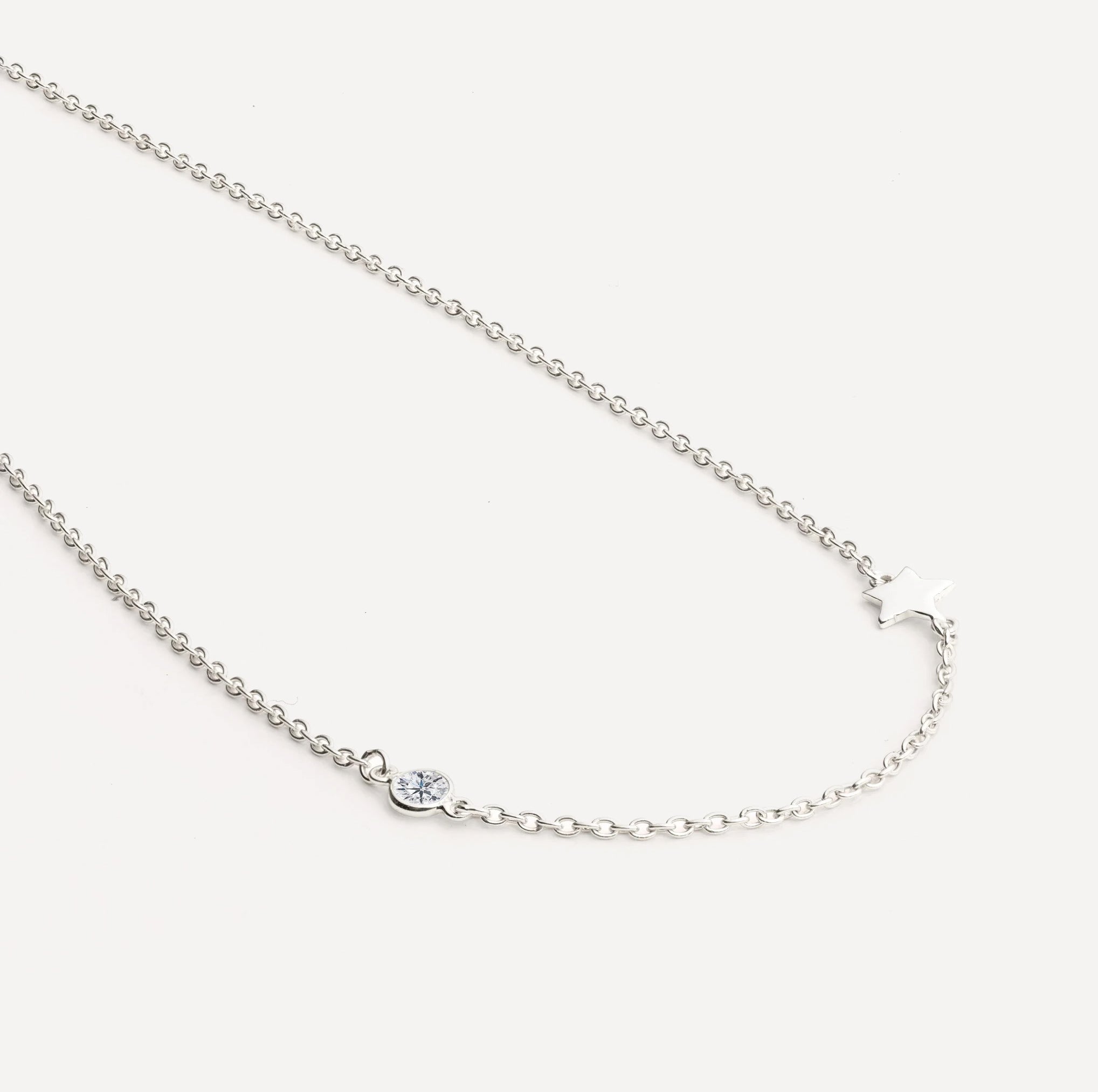 This adorable necklace features a twinkling cubic zirconia gemstone sitting alongside a single shooting star, and is crafted from recycled sterling silver. Also available in 18ct gold vermeil.