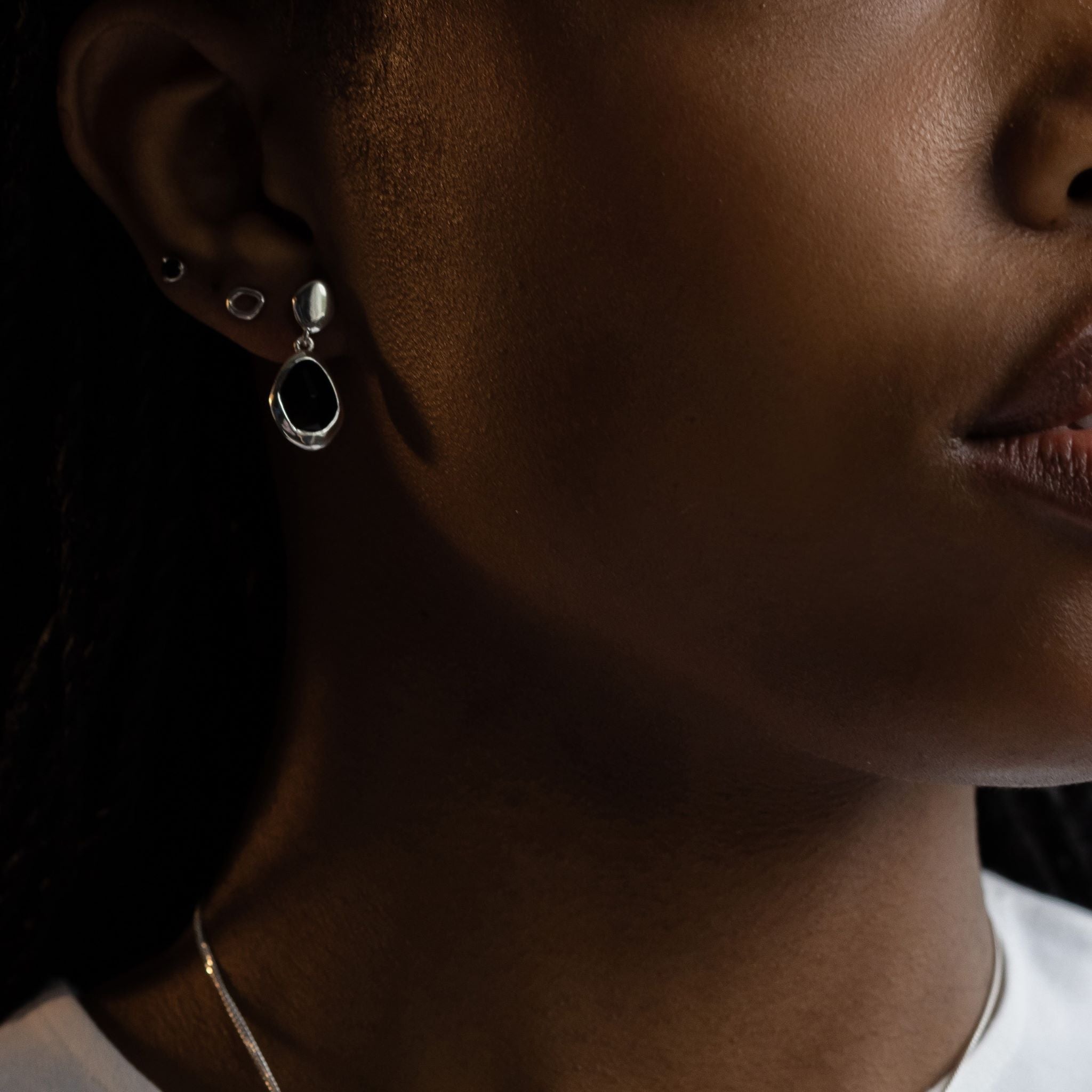 The Amble collection draws inspiration from the clear waters and rolling hills of Glendalough which lies nestled in the Wicklow mountains. Our Stepping Stone earrings in sterling silver or gold vermeil feature a stunning, natural Black Onyx gemstone - handcut to catch the light with every movement. Designed to rekindle childhood memories of exploring, laughing and escaping into another world.
