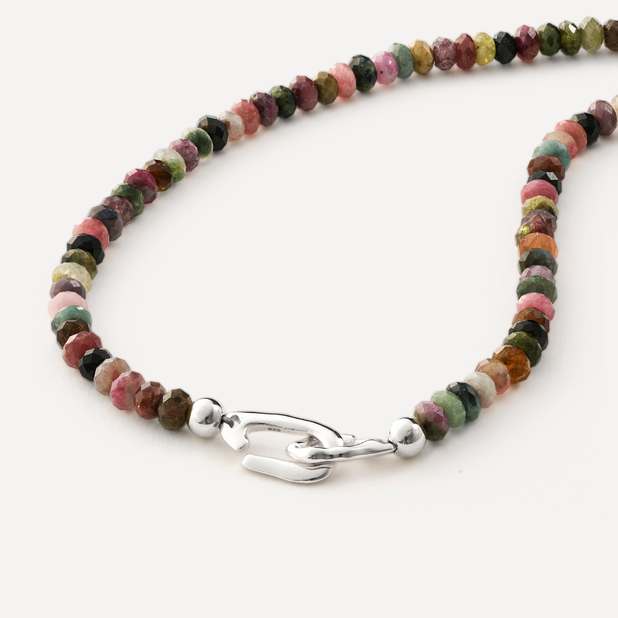 Showcasing the natural beauty of our planet in its rawest form, this striking chunky necklace features the most spectacular natural Watermelon Tourmaline gemstones. Layer up with a merrow pendant or long beaded chain for a relaxed, boho vibe, or wear solo as a strong statement piece.
